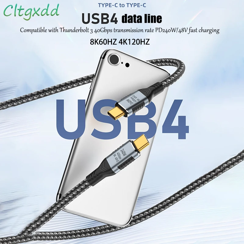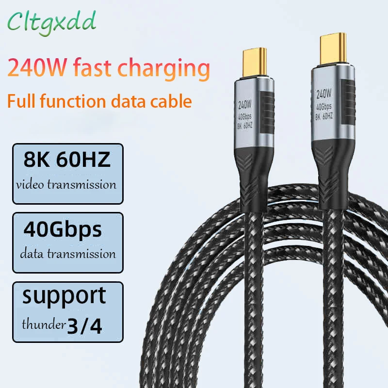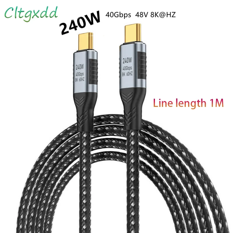 Comprar Cable de datos USB4 de carga rápida tipo C, Cable de alimentación PD de 40Gbps, 240W, 1M, 48V, 8K @ 60HZ, Cable de proyección de vídeo de alta definición, 5A