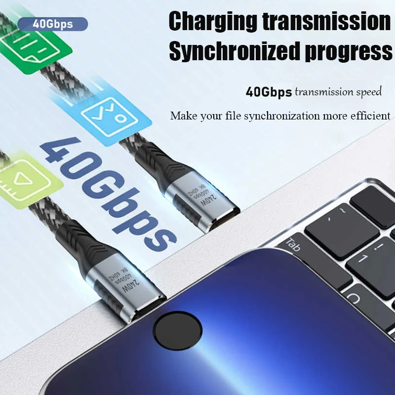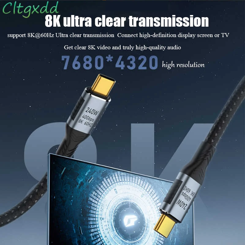 Cable DE DATOS USB4 40Gbps 240W (1M) Cable de carga rápida tipo C Cable de alimentación PD 48V 8K @ 60HZ Cable de proyección de video de alta definición 5A