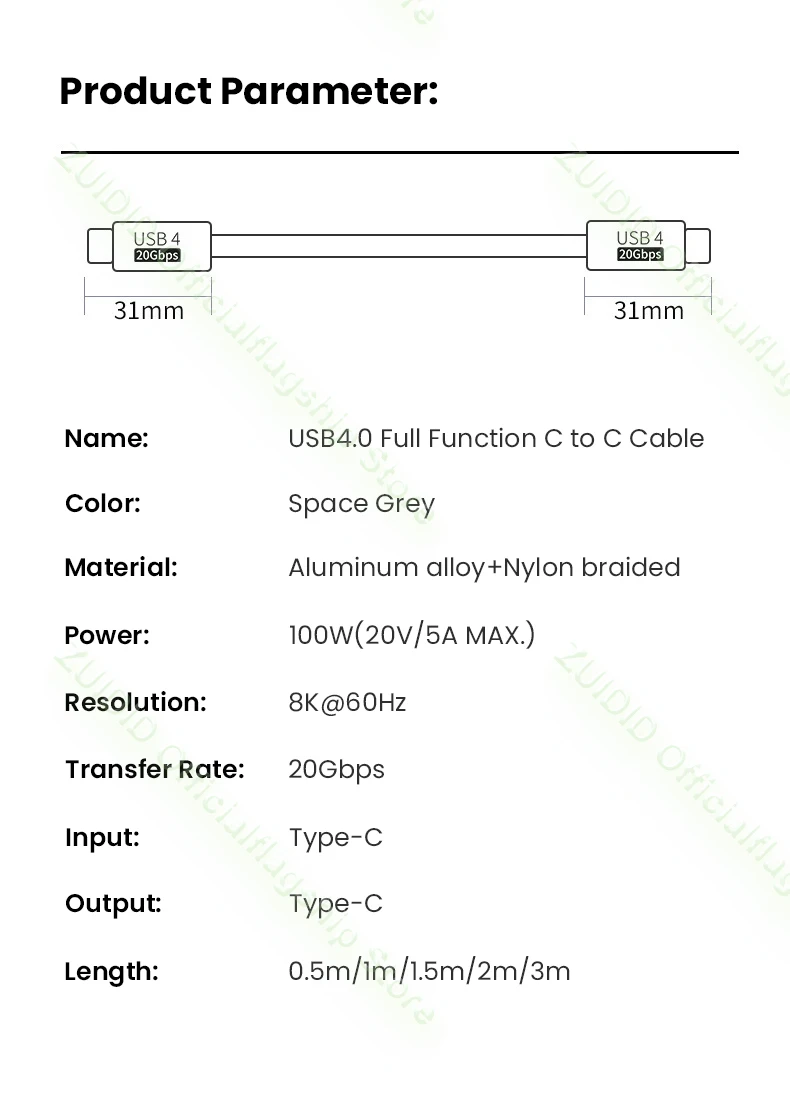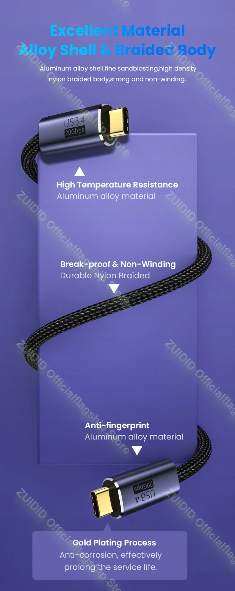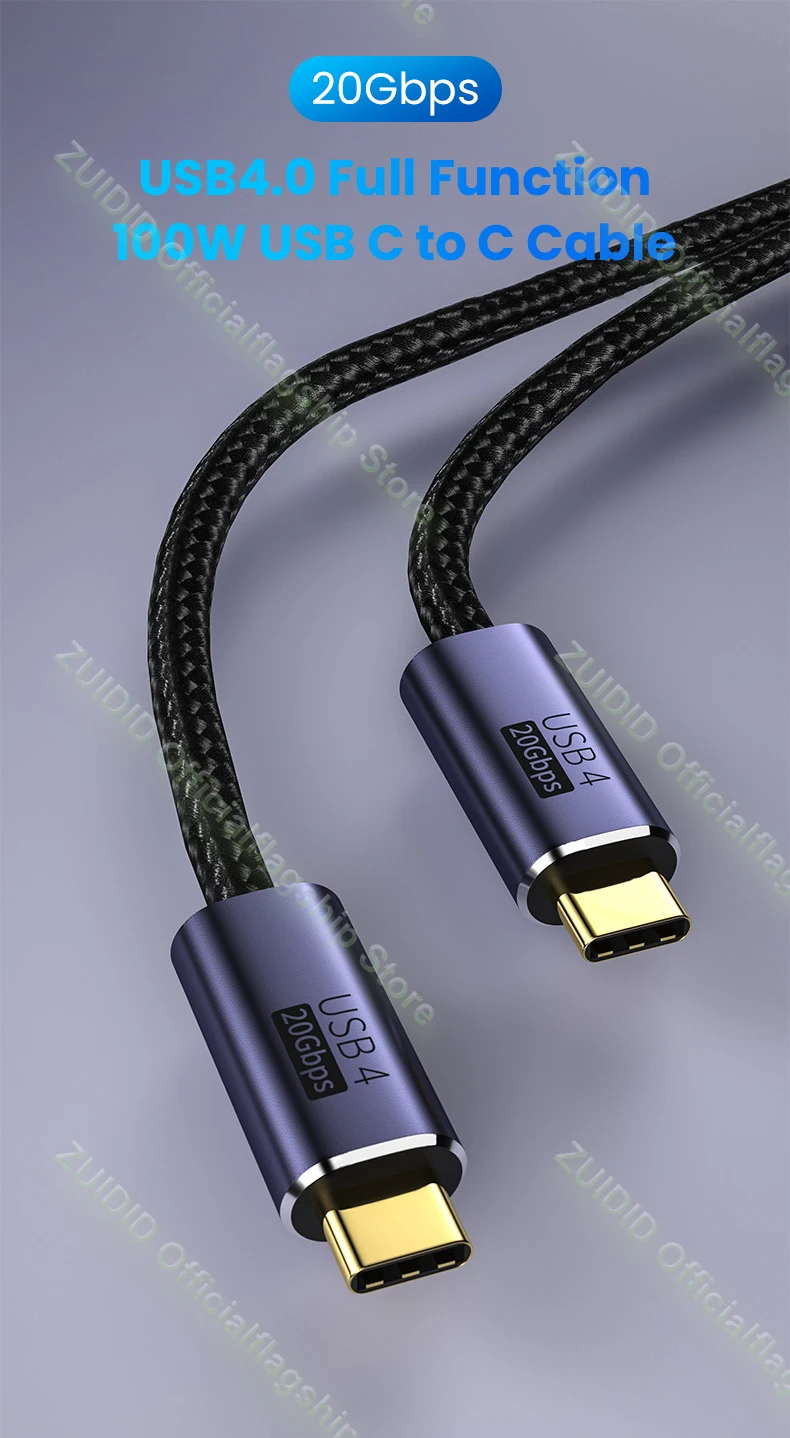 Comprar Cable de datos USB4.0 de 20Gbps PD 100W 5A Cable USB tipo C a tipo C de carga rápida Cable Thunderbolt 3 8K @ 60Hz para Macbook Pro