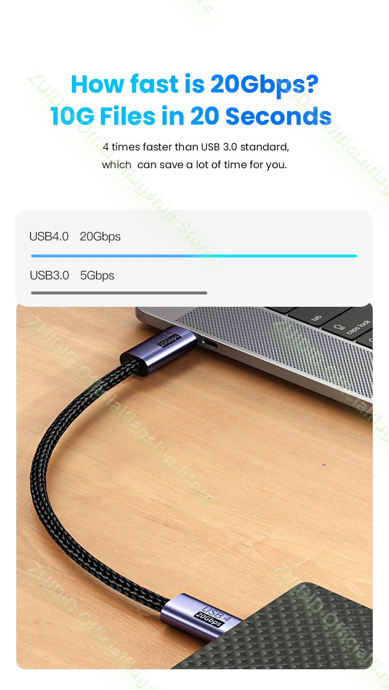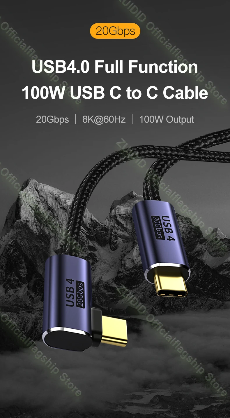 Cable de datos USB4.0 de 20 Gbps con codo PD 100W 5A Cable de carga rápida USB tipo C a tipo C Cable Thunderbolt 3 8K @ 60 Hz para Macbook Pro