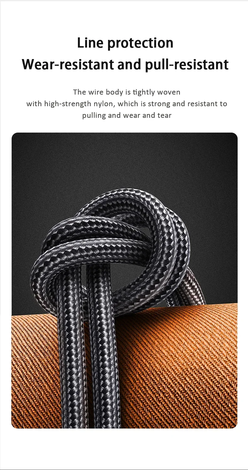 - Carga rápida PD de 100 W Utilice el cargador original o compre un cargador con más de 100 W de potencia; de lo contrario, el cable no podrá reproducir el mejor rendimiento.