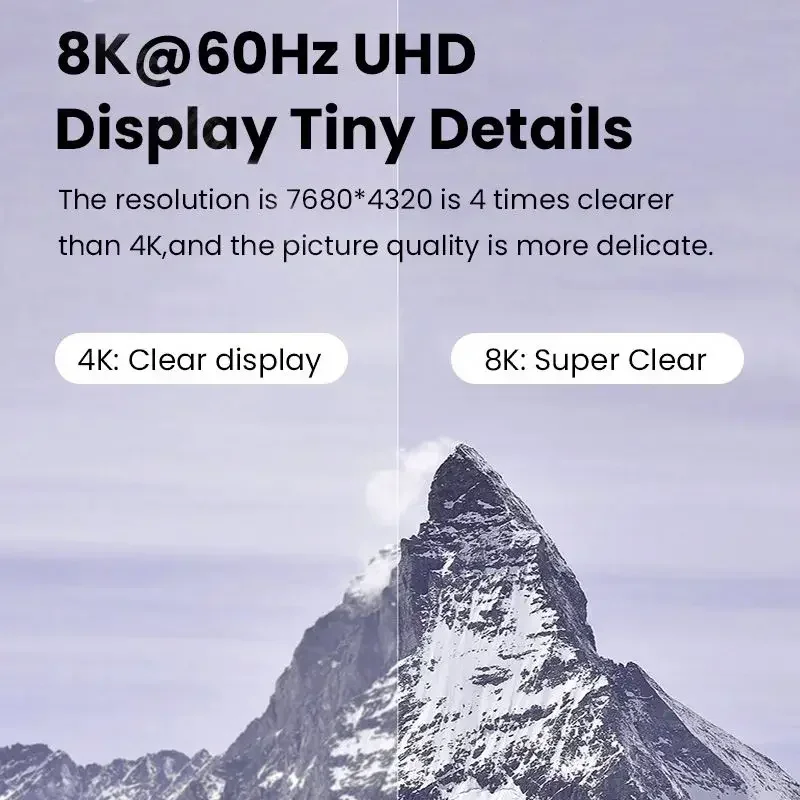Resolución de hasta 7680*4320P@60Hz, puede conectar su teléfono móvil/tableta/portátil al monitor sin WiFi, acercar la pantalla, jugar, ver películas, trabajar, de manera más conveniente.