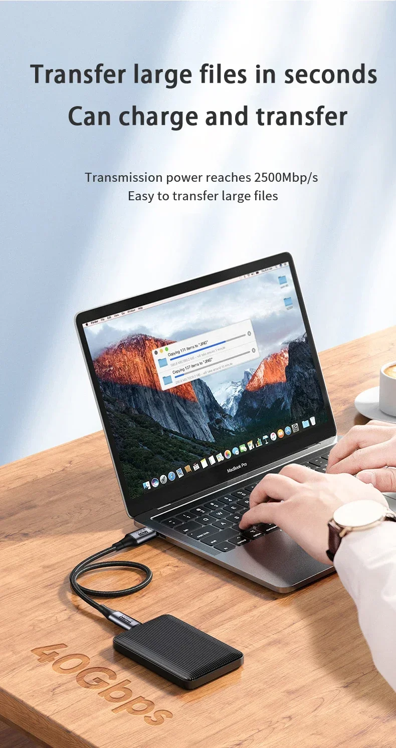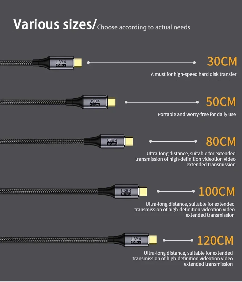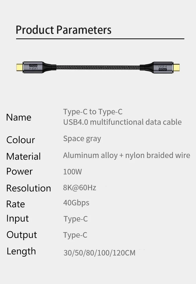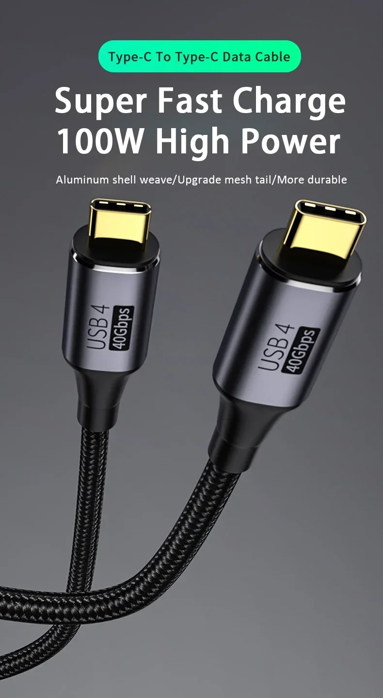 Cable de datos USB4.0 20/40Gbps 5A PD 100W carga rápida Cable USB C a C compatible con 8K@60Hz para Thunderbolt Macbook Pro 2/3m Cable