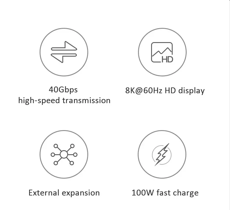- Velocidad de transferencia de 40 Gbps, asegúrese de que su dispositivo también lo admita; de lo contrario, no se lograrán el mejor rendimiento.