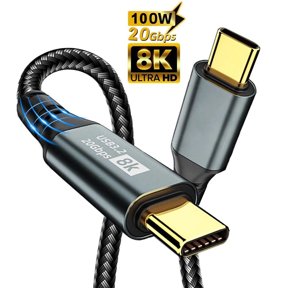 Comprar Cable de datos de vídeo PD 100W USB C, Cable USB 3,2 a tipo C Gen2, 20Gbps, 8K @ 60Hz, para PC, portátil, Macbook, iPad, iPhone 15 Pro Max, Xiaomi