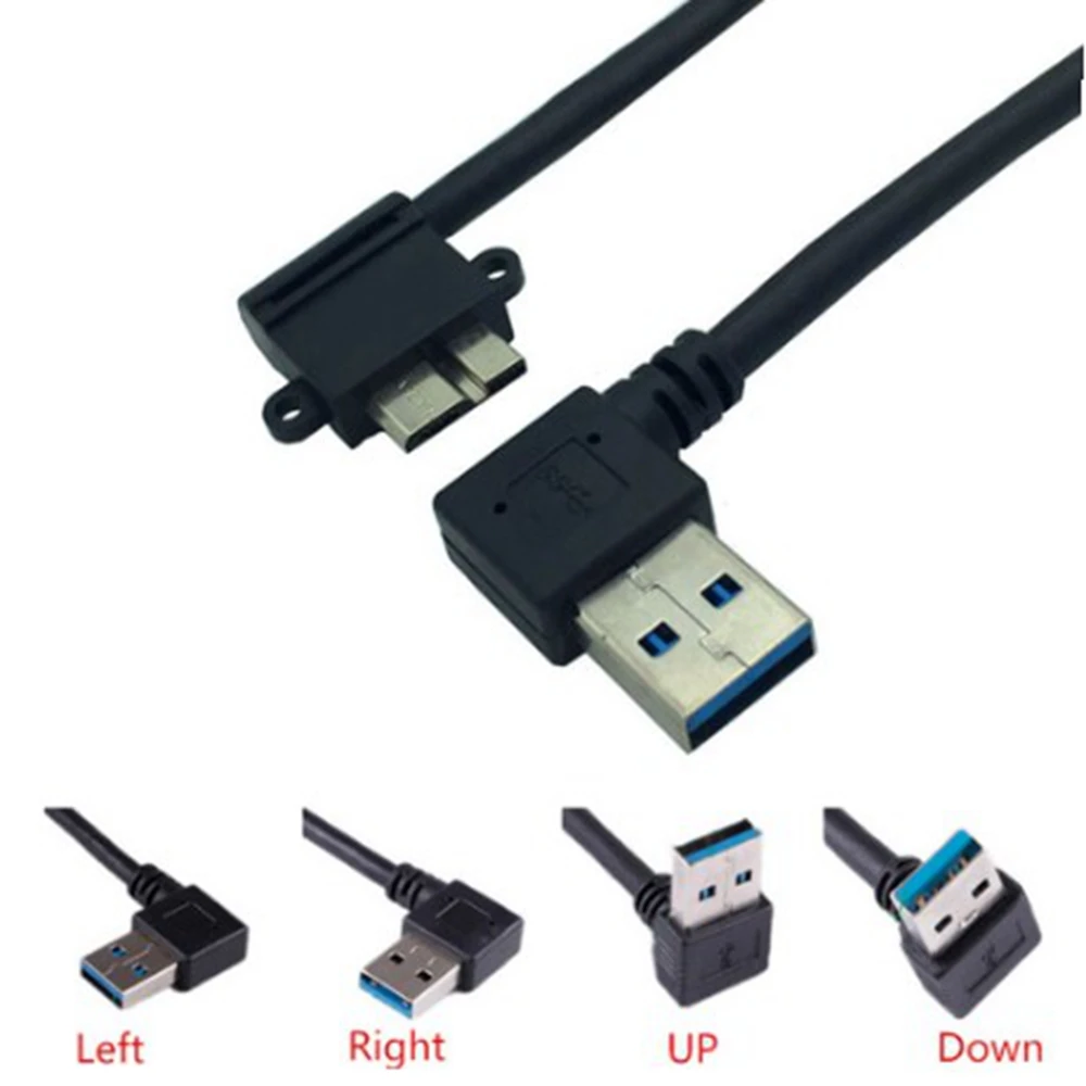 Comprar Cable de datos y carga cortos USB 3,0 A, ángulo de 90 grados hacia arriba, macho A Micro B, macho, 10 pines, ángulo izquierdo de 90 grados