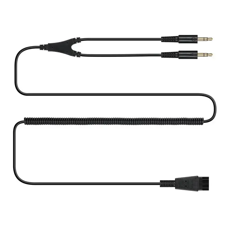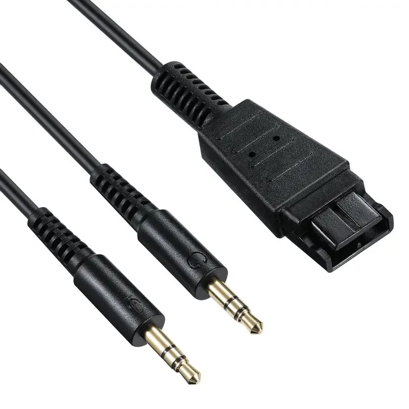 Un extremo es un conector QD, adecuado para auriculares Plantronics y VoiceJoy con conectores QD.