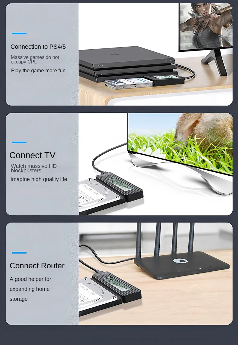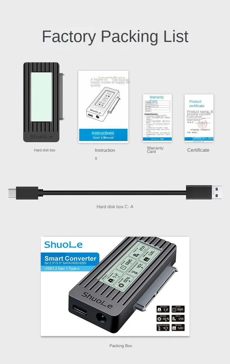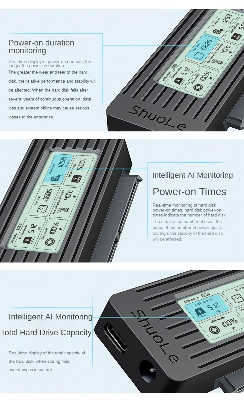 Funciona bien para HDD SATA 2,5 y 3,5, 1 TB o pequeño, pero la pantalla muestra datos muy pequeños y es difícil de leer. no lo recomiendo