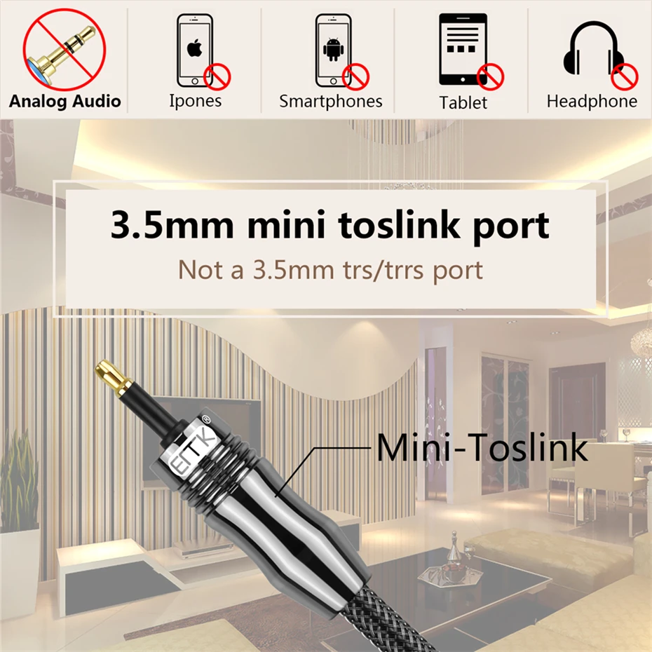 EMK Digital Toslink a Mini Toslink Cable 3,5mm SPDIF Cable de fibra óptica 3,5 A Adaptador de Cable de Audio óptico para Macbook 1m 2m 3M 5m 10m 15M