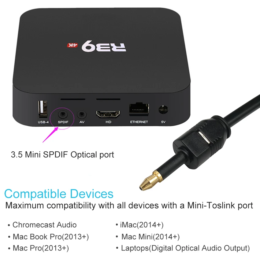 1 cable Toslink de audio óptico EMKDigital a Mini Toslink
