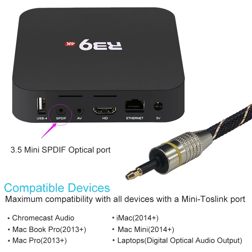 Comprar Cable Digital Toslink a Mini Toslink de 3,5mm, Cable de fibra óptica SPDIF de 3,5 a adaptador de Cable de Audio óptico para Macbook de 5m y 10m