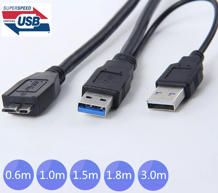 Comprar Cable de disco duro externo Micro B USB 3,0, 5gbps, con fuente de alimentación USB, 0,6 m, 1,0 m, 1,5 m, 1,8 m, 2 pies, 3 pies, 5 pies, 6 pies, 10 pies, negro