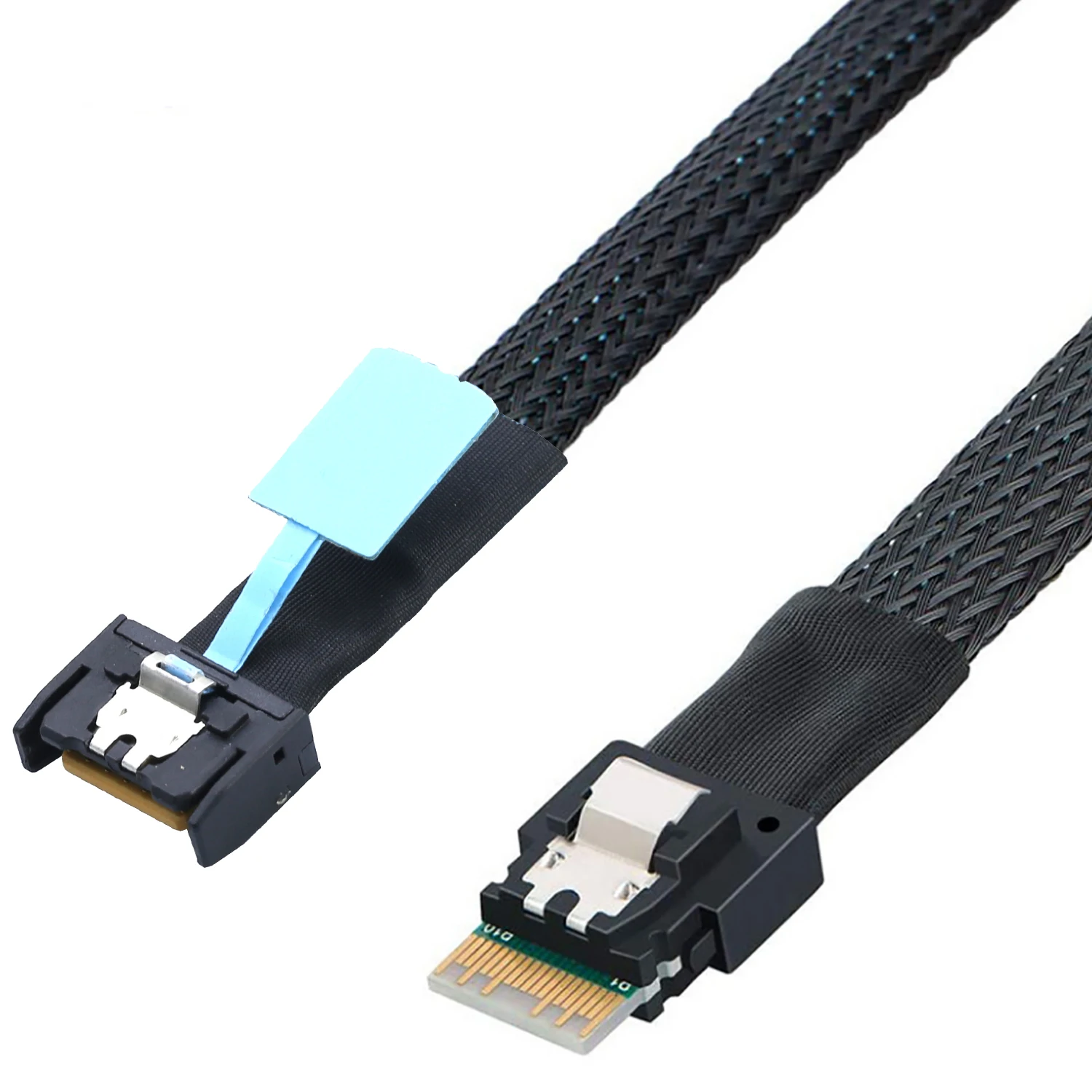 Diseño compacto: El tamaño pequeño de la interfaz SFF-8654 4i permite que el cable ahorre espacio, lo que lo hace especialmente adecuado para equipos de almacenamiento y redes de alta densidad.