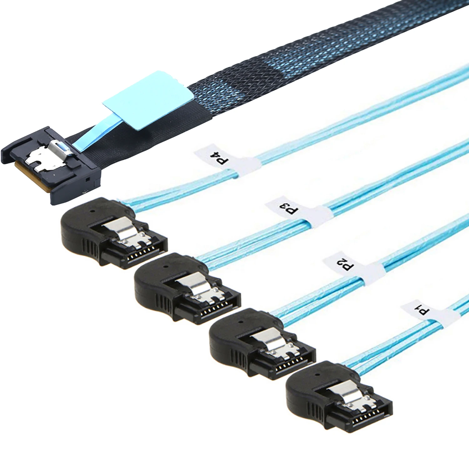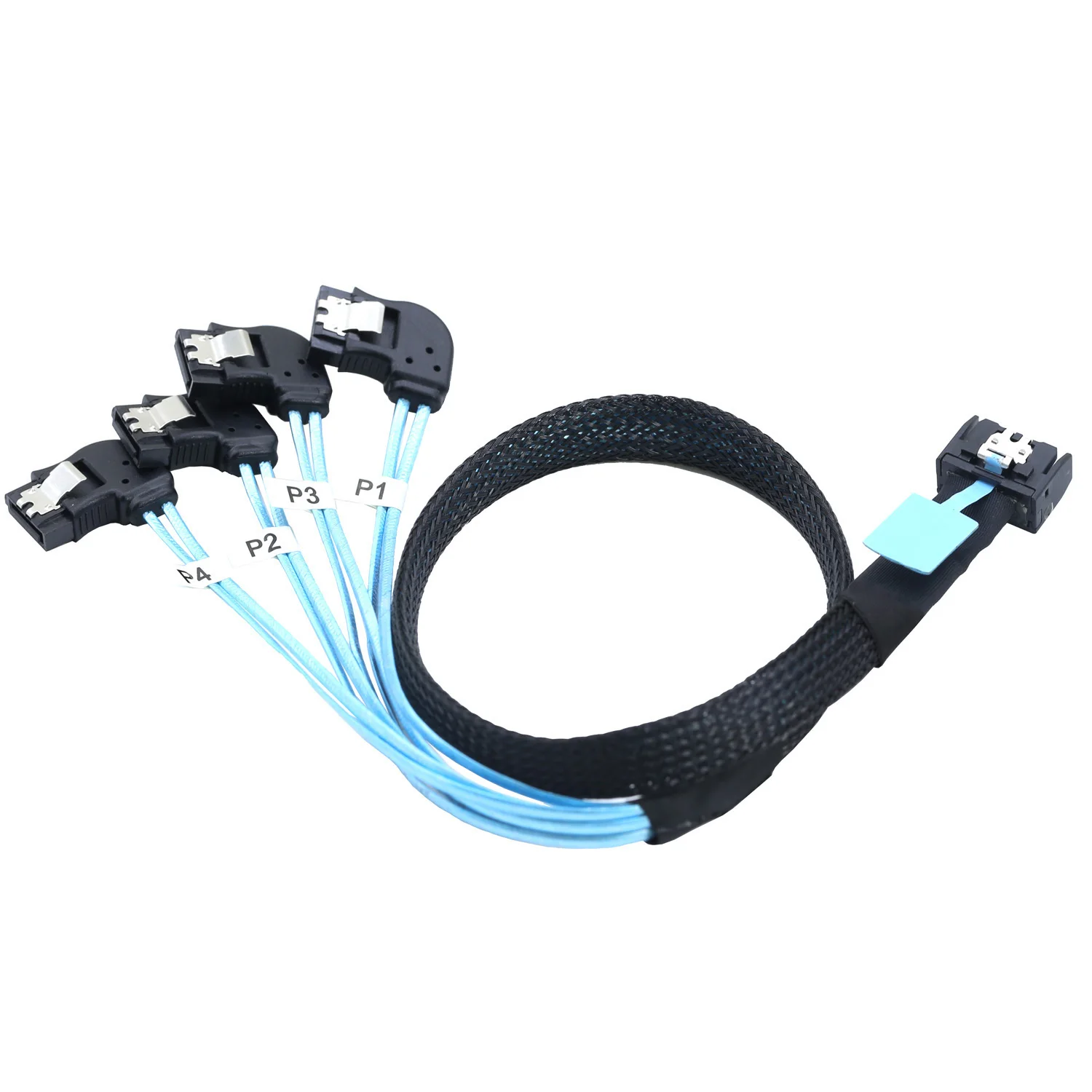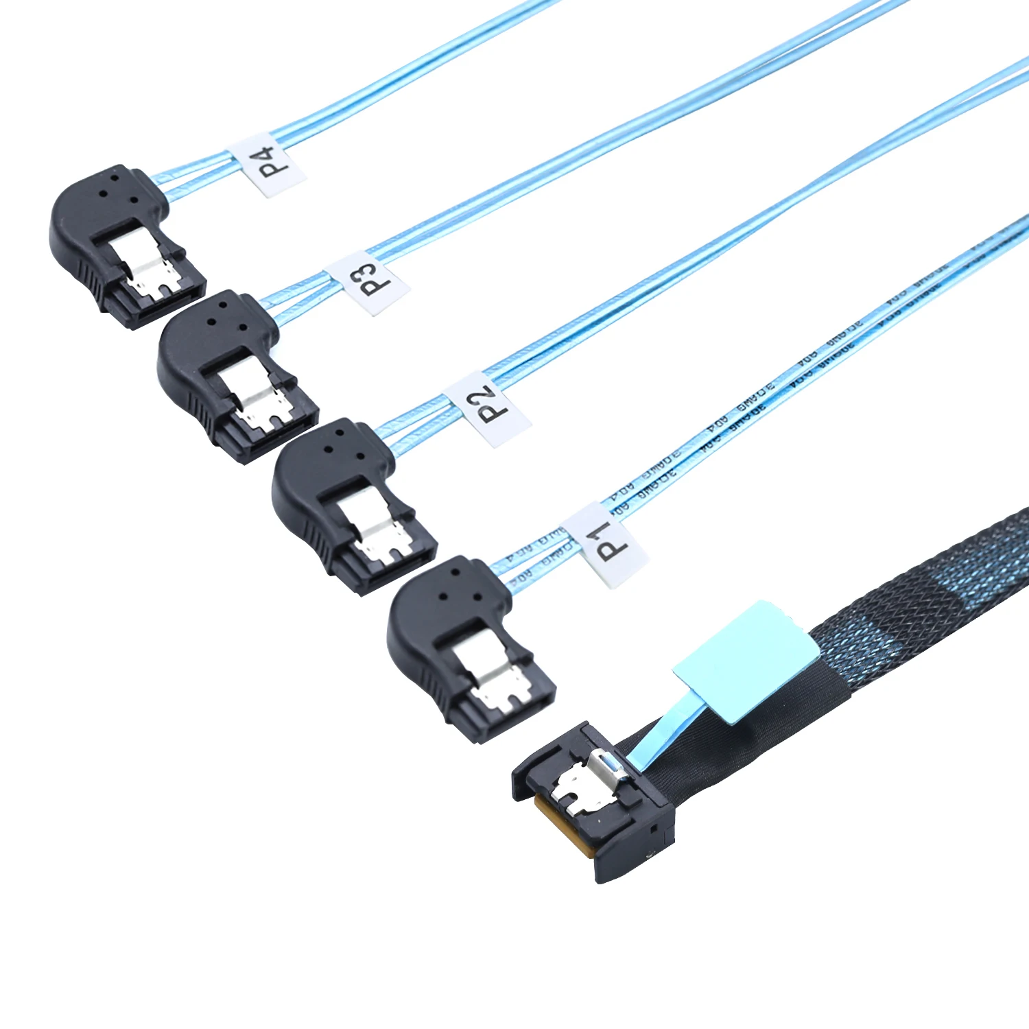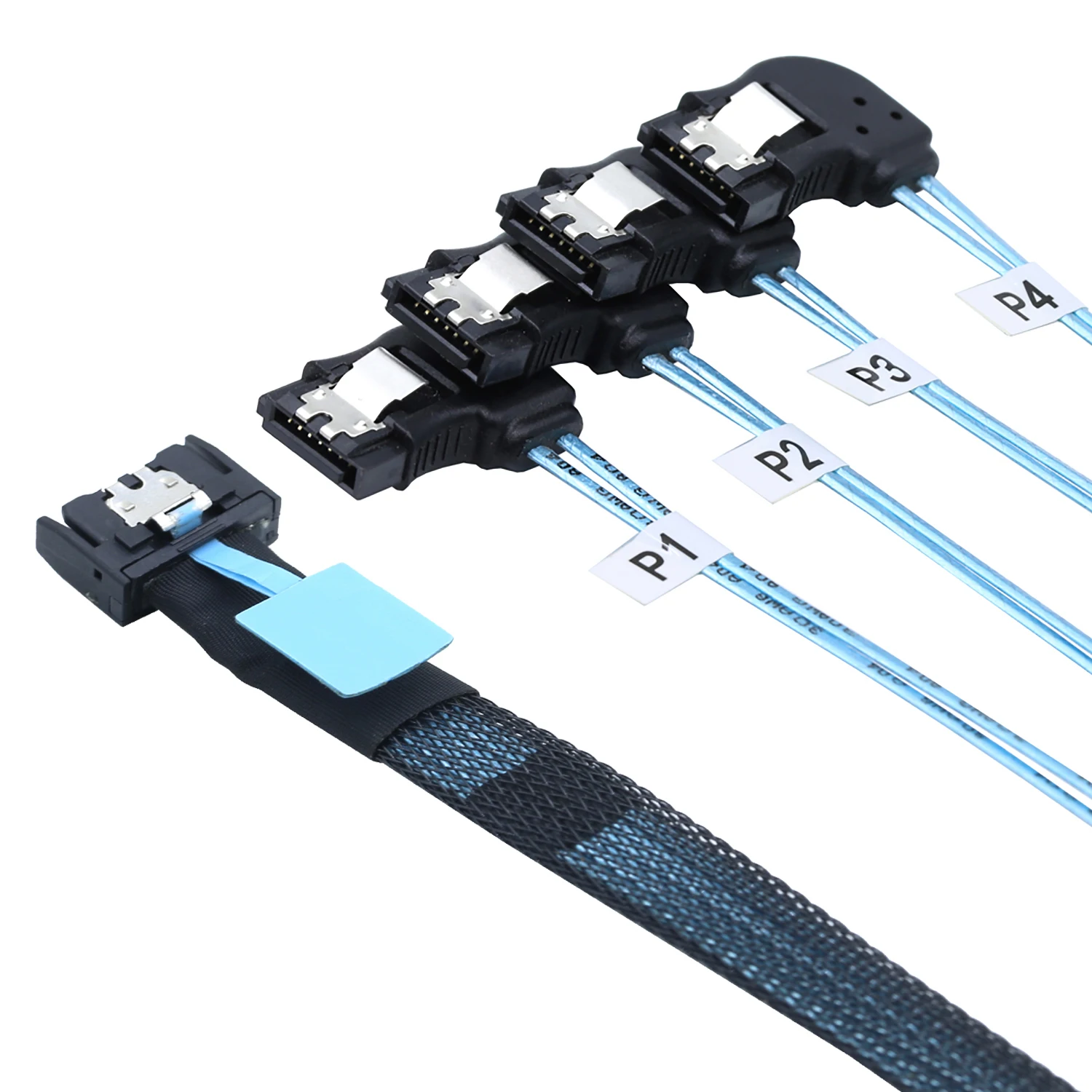Comprar Cable de disco duro interno PCIE Slimline Mini SAS MCIO SFF-8654 4I 38P a 4X SATA, ángulo izquierdo