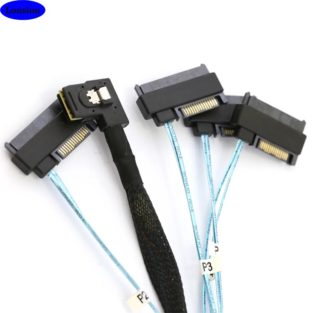 Actualice su servidor o sistema de almacenamiento con este cable HDD Mini SAS (SFF-8087) de ángulo recto de alto rendimiento a SAS (SFF-8482) de 4 puertos.