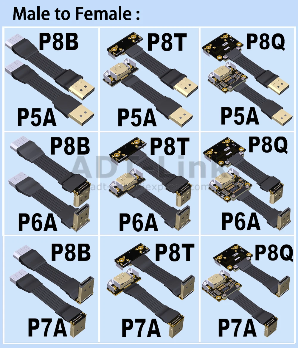 Nota 1:DP8B y DP8T no tienen E-mark/chip. Después de conectar dos líneas DP en serie, es posible que la atenuación de la señal no cumpla con la velocidad máxima de DP1.4. DP8Q con E-mark/chip, la tecnología de chip activo puede mejorar la señal, admite DP1.4 a velocidad completa