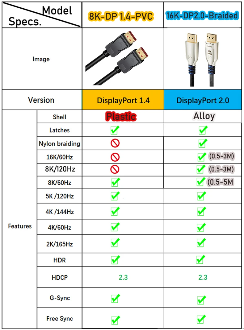 Comprar Cable DisplayPort de 144Hz, cable DisplayPort 2,0 de 16K y 8K, cable Displayport largo de 10M, 7,5M, 5M, 3M, Cable de Monitor DisplayPort 1,4 DP