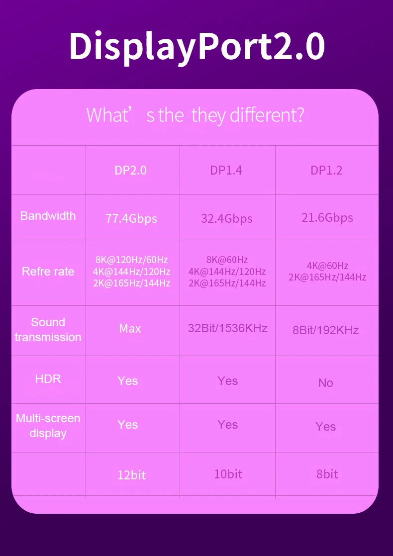 Comprar Cable DisplayPort 2,0, 8K, 4K, HDR, 60Hz, 144Hz, 165Hz, adaptador de puerto de pantalla para vídeo, PC, portátil, TV, DP 2,0 a DP