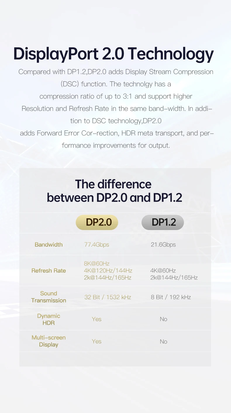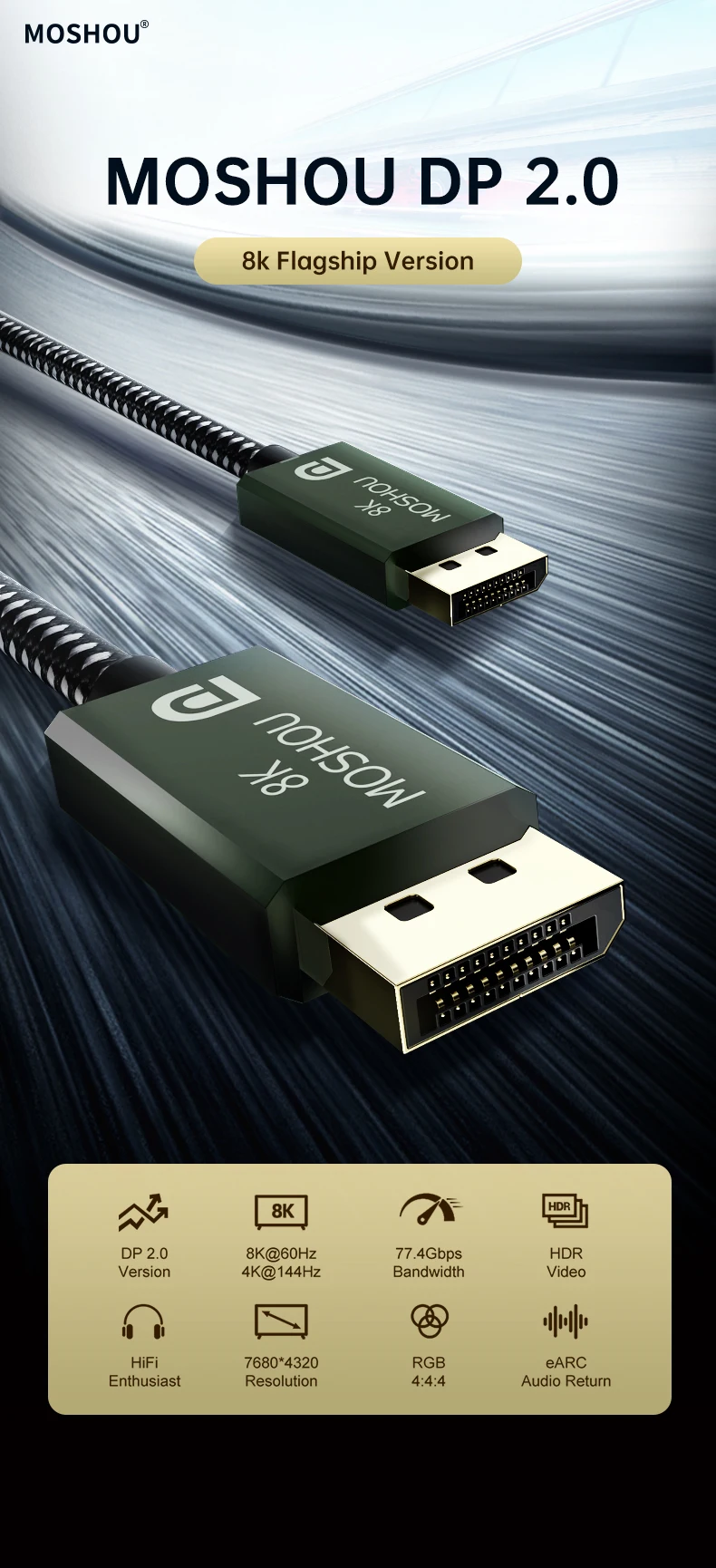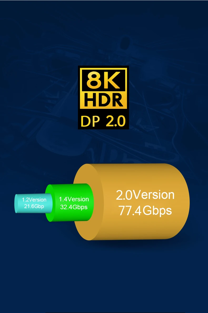 Comprar Cable DisplayPort 2,0 8K 60Hz 4K 144Hz 77,4 Gbps, adaptador de puerto de pantalla para vídeo, PC, portátil, TV RTX 3080 DP 2,0 a Cable DP