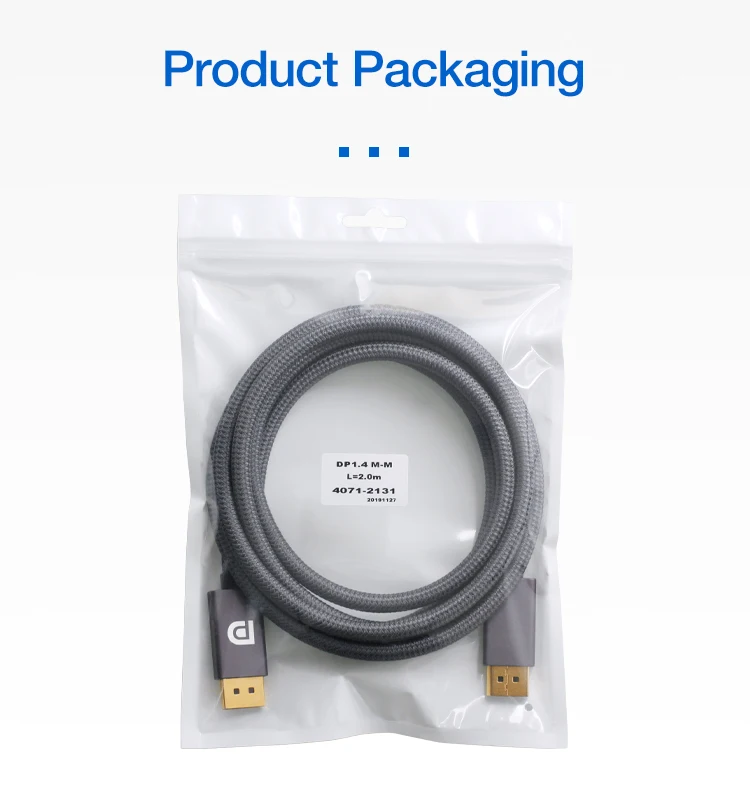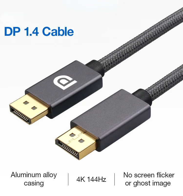 ChaquetaPVC+TrenidoColor Gris Longitud2 m/6,6 piesMOQ1 piezaPersonalizaciónODM/OEMEmbalajeBolsa de plásticoPeso del artículo140 gramosPruebas de calidadPrueba de función e inspección visual.La garantíaUn añoFunción del productoConecte fácilmente una computadora de escritorio o portátil equipada con DisplayPort a un monitor o proyector HD con entrada DisplayPort usando este cable DisplayPort a DisplayPort; Ideal para transmisión de video, juegos o ampliación de una estación de trabajo