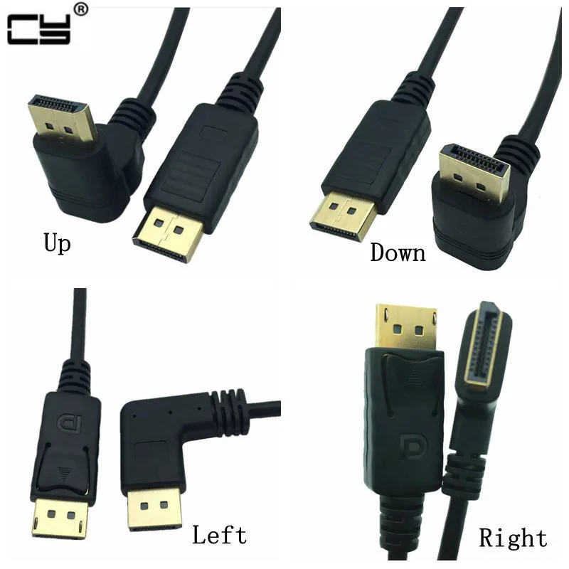 Cable de versión DisplayPort DP 1,2 HD 3D para HDTV PC tarjetas gráficas proyector de ordenador portátil adaptador de Cable Displayport arriba, abajo y abajo en ángulo izquierdo y derecho