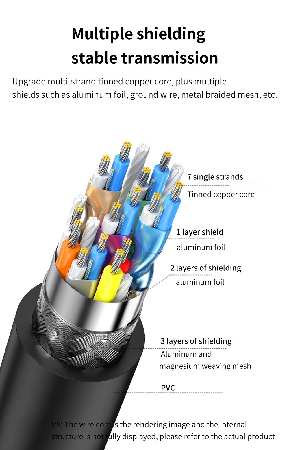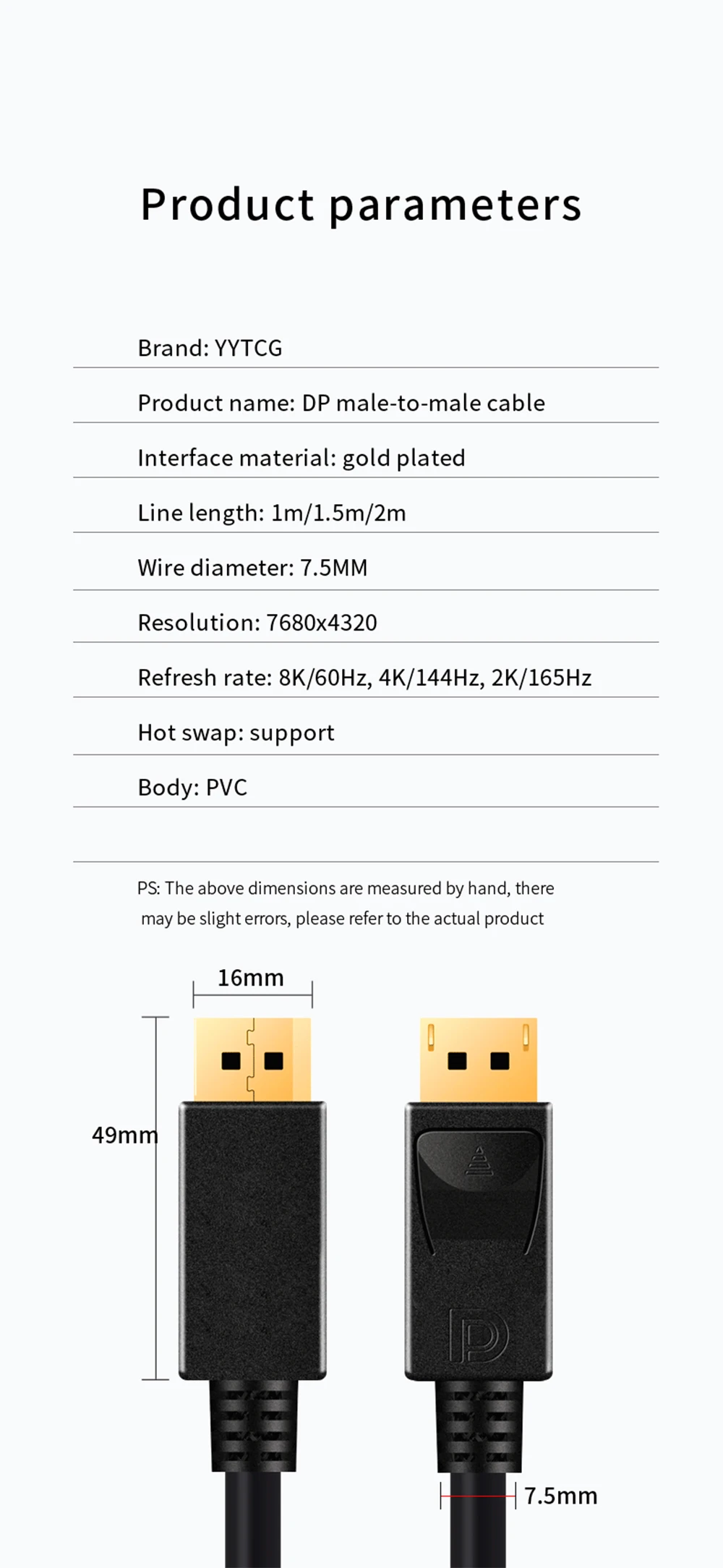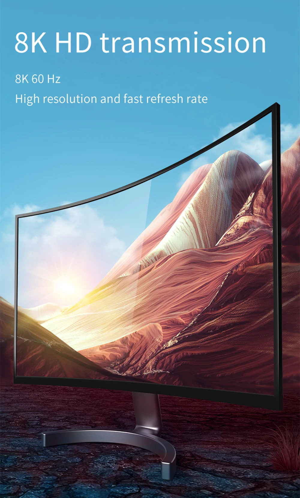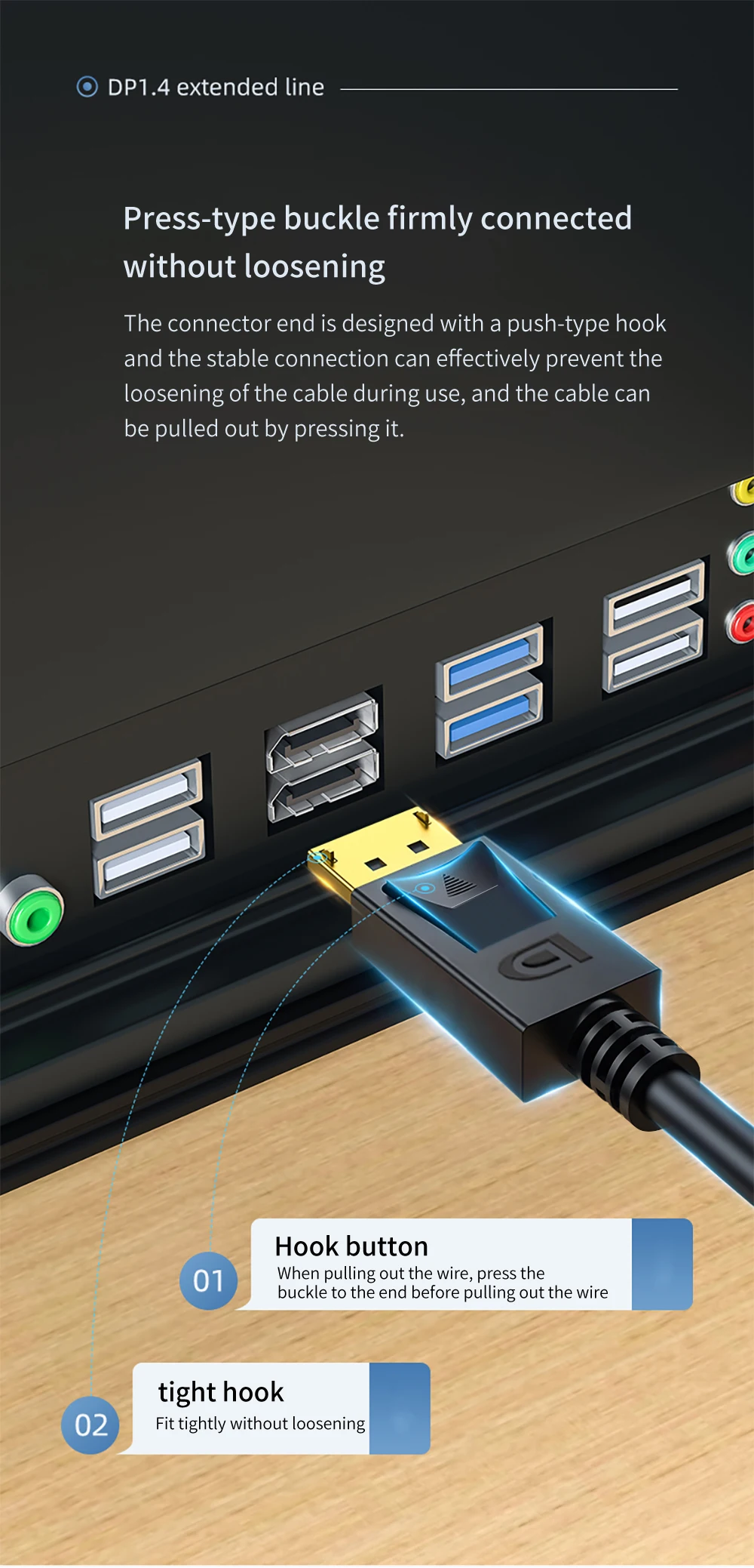 3. CABLEADO DE GRADO PARA JUEGOS Use dispositivos de visualización de 8K, 4K,60Hz/144Hz/165Hz Mejor experiencia con la interfaz DP (DisplayPort) estándar de este producto