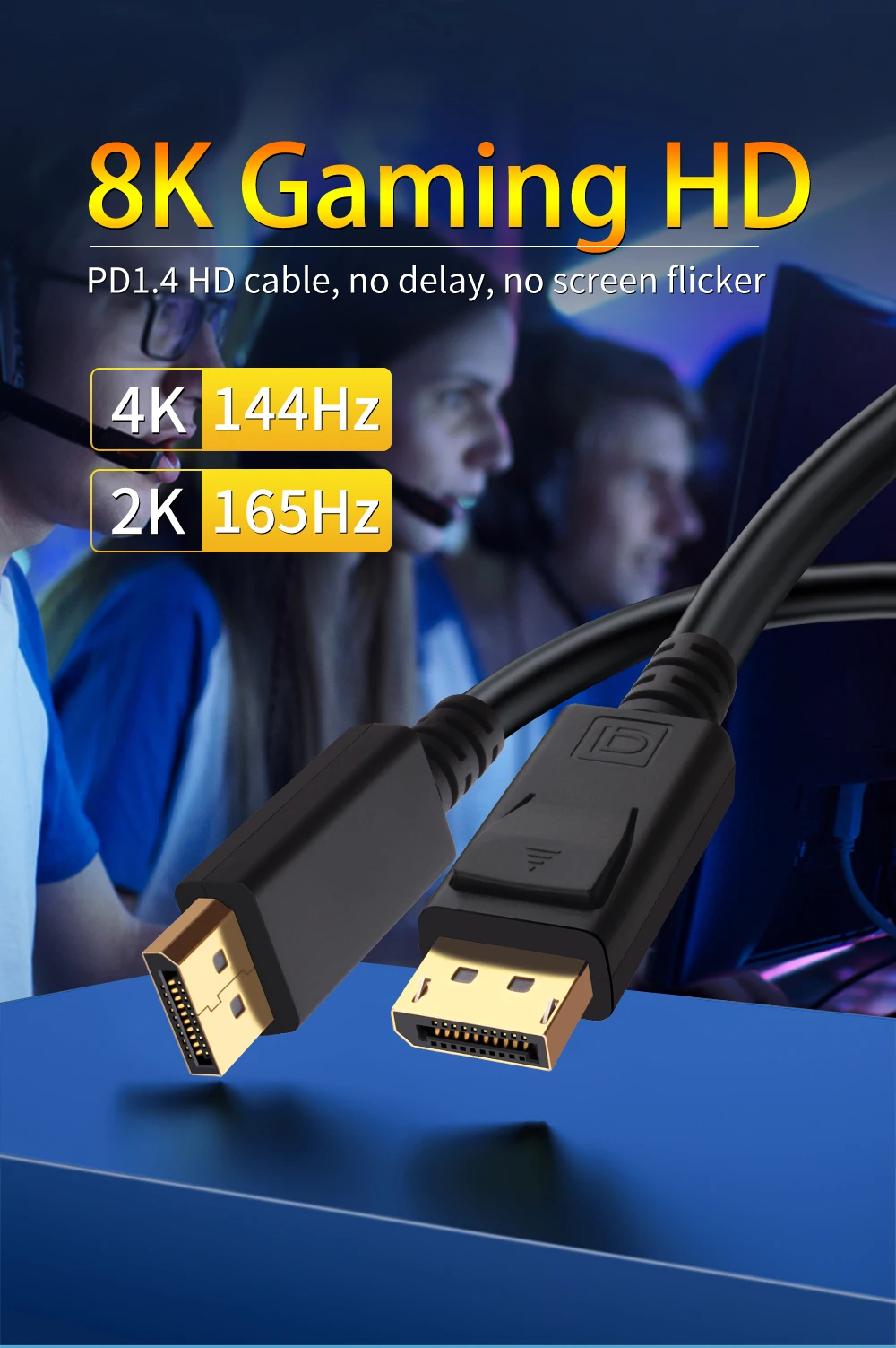 1. Cable HD 8K Gaming HD PD1.4, sin retraso, sin parpadeo de pantalla 4K 144Hz 2K165Hz