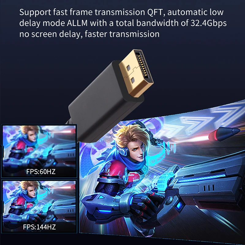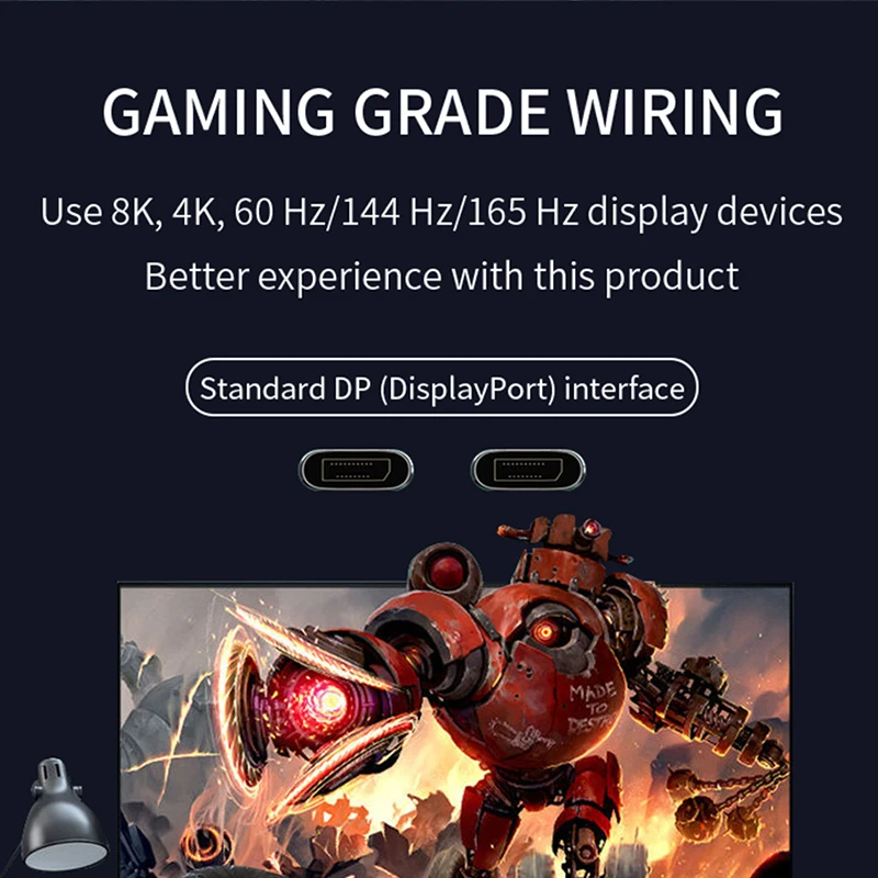 3. CABLEADO DE GRADO PARA JUEGOS Use dispositivos de visualización de 8K, 4K,60Hz/144Hz/165Hz Mejor experiencia con la interfaz DP (DisplayPort) estándar de este producto