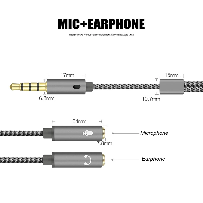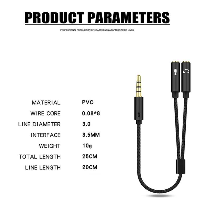 Cable divisor de Audio 2 en 1 para conector de ordenador de 3,5mm, 1 macho a 2 hembra, Mic Y Splitter, Cable AUX, adaptador divisor de auriculares, cables