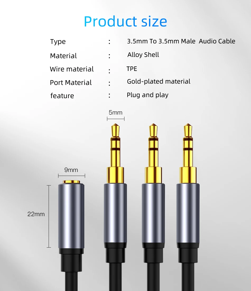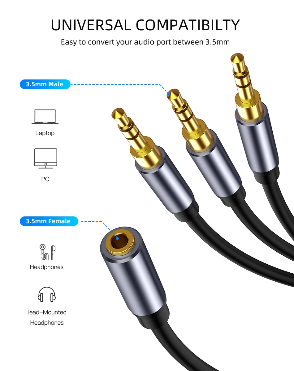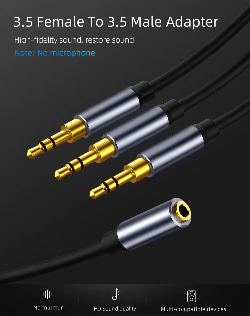 Cable divisor de Audio de 3,5mm, 3,5mm hembra a 3 puertos, 3,5mm macho con micrófono 3,5, adaptador de Cable auxiliar de extensión para altavoz de coche