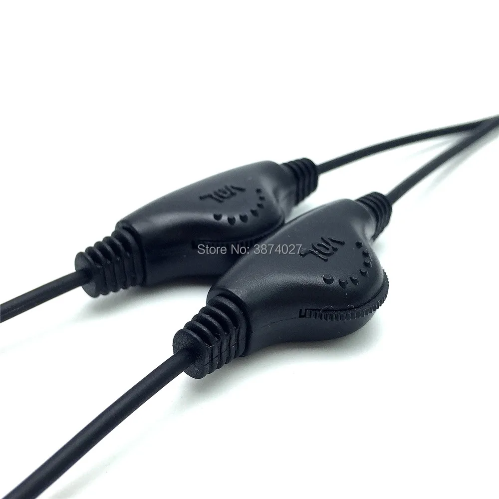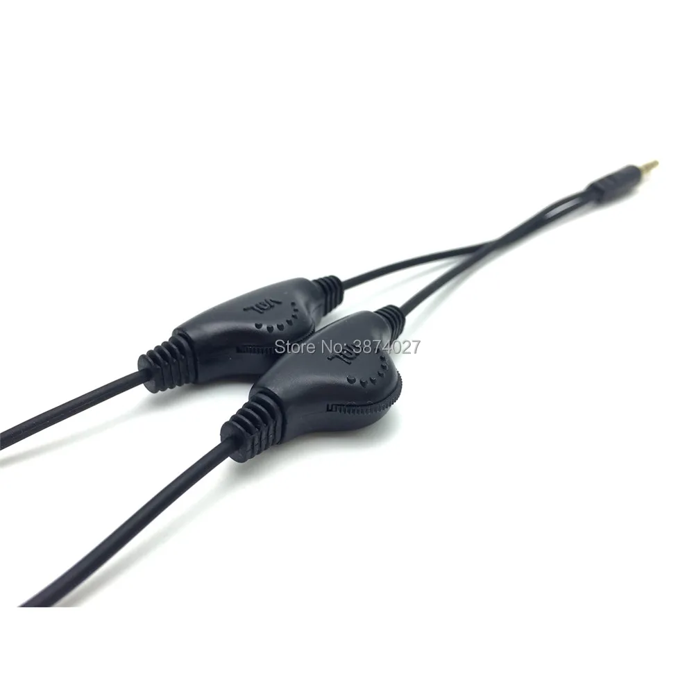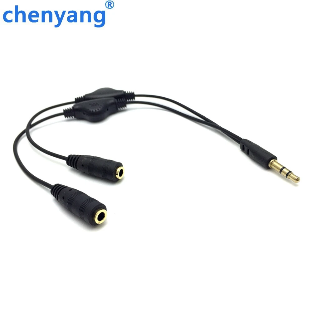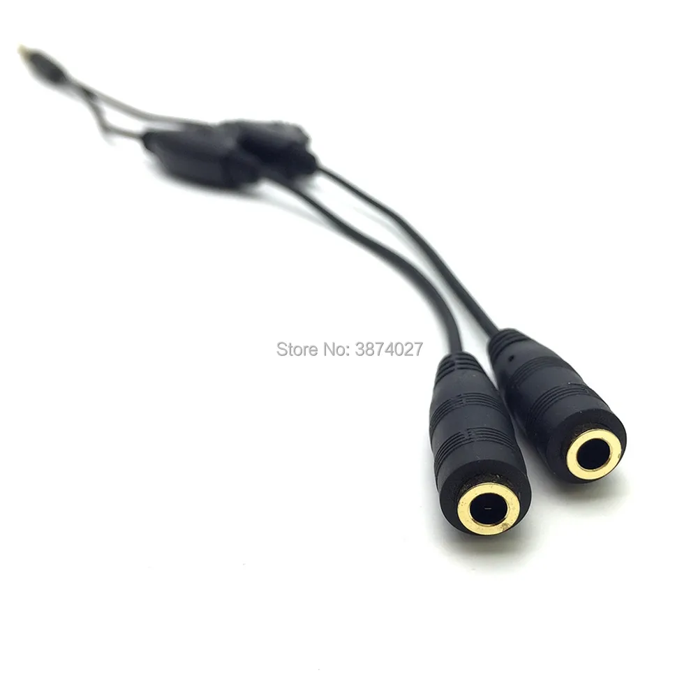 Un enchufe macho estéreo de 3,5mm a dos cables jack hembra de 3,5mm
