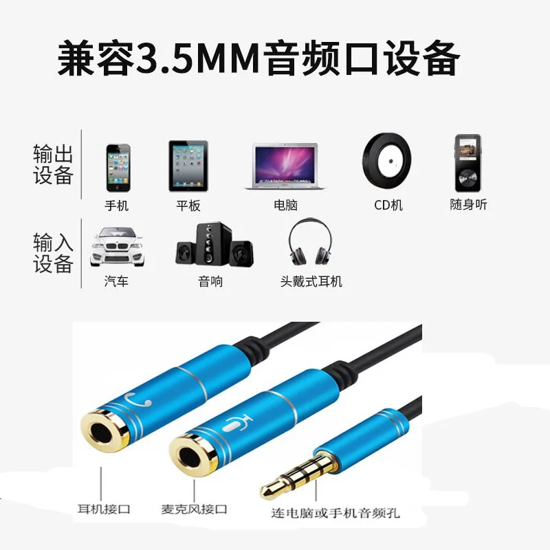 Comprar Cable divisor de Audio para ordenador, Conector de 3,5mm, 1 macho a 2 hembra, Cable auxiliar divisor de micrófono Y, adaptador divisor de auriculares 2 en 1 de 3,5mm
