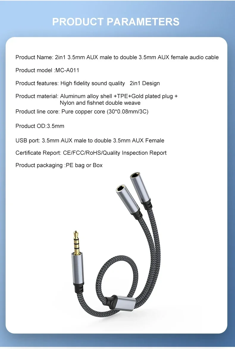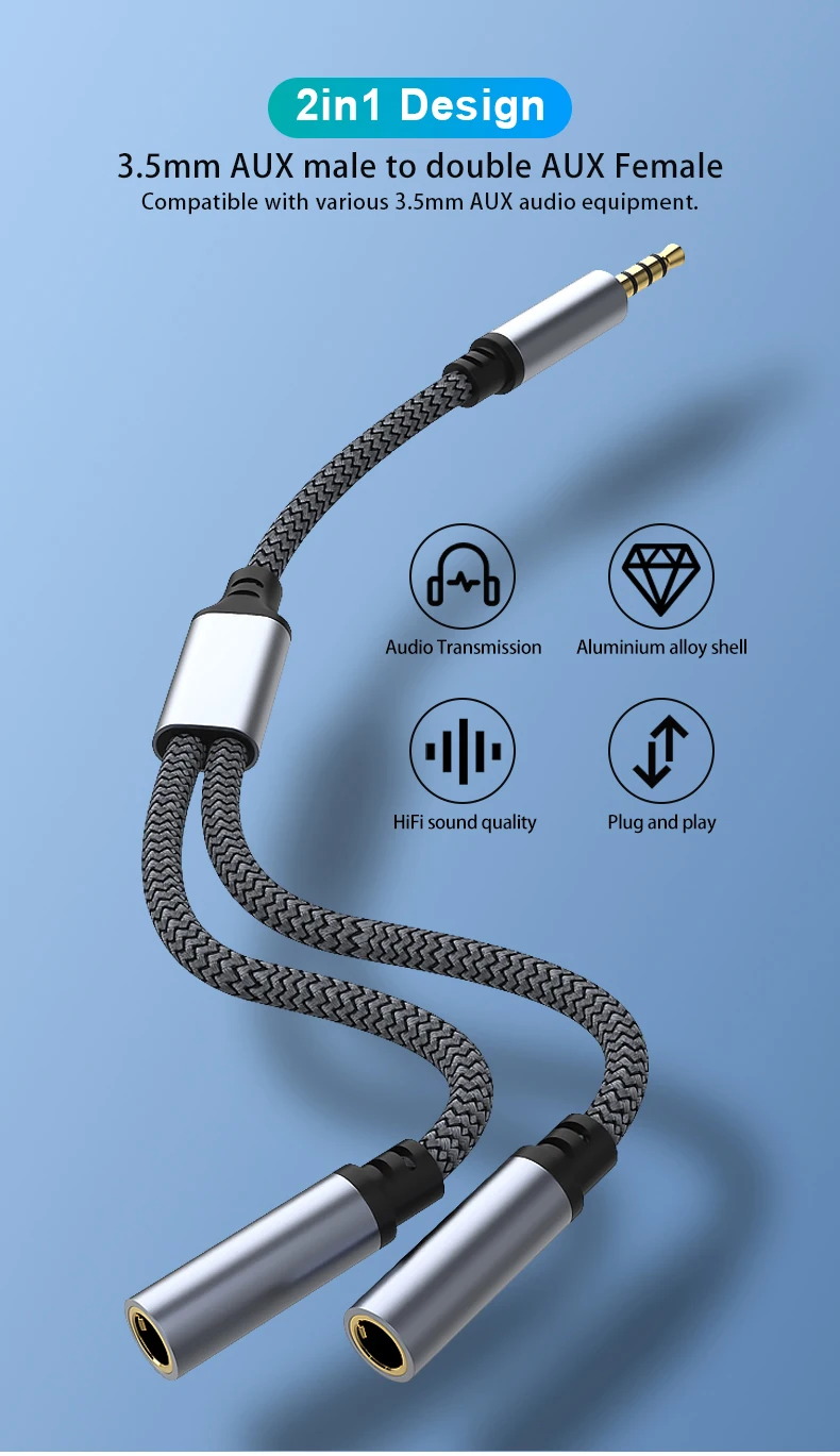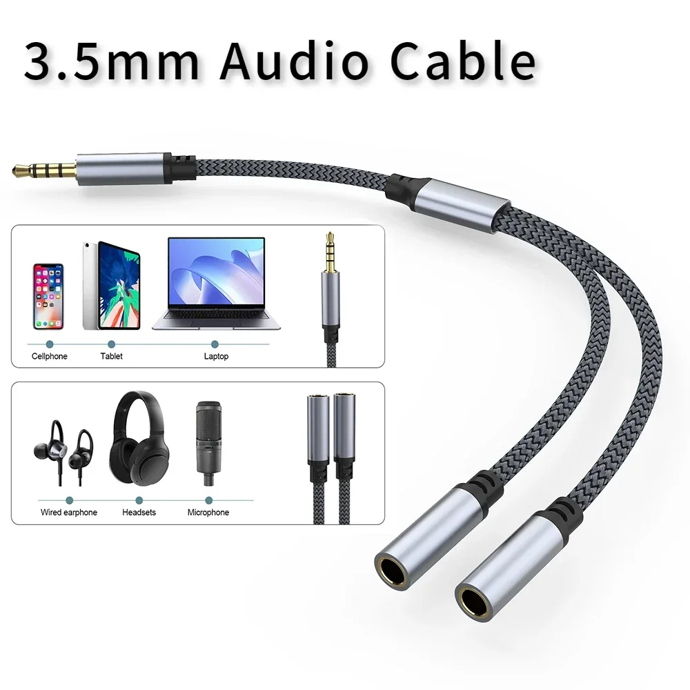 Comprar Cable divisor de auriculares Jack 3,5mm a 3,5mm macho a 2 hembra para teléfono Ipad Latop auricular con cable micrófono Cables adaptadores auxiliares