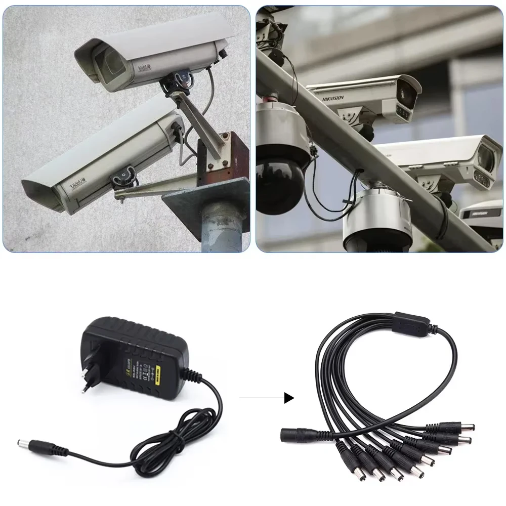 Cable divisor de alimentación CC de 5,5x2,1mm, 1 a 2/3/4/5/6/8 vías, Cable conector adaptador de corriente de 5V y 12V para luces de tira LED, cámara CCTV
