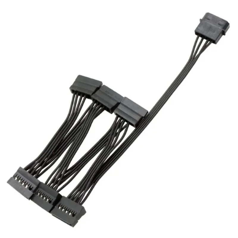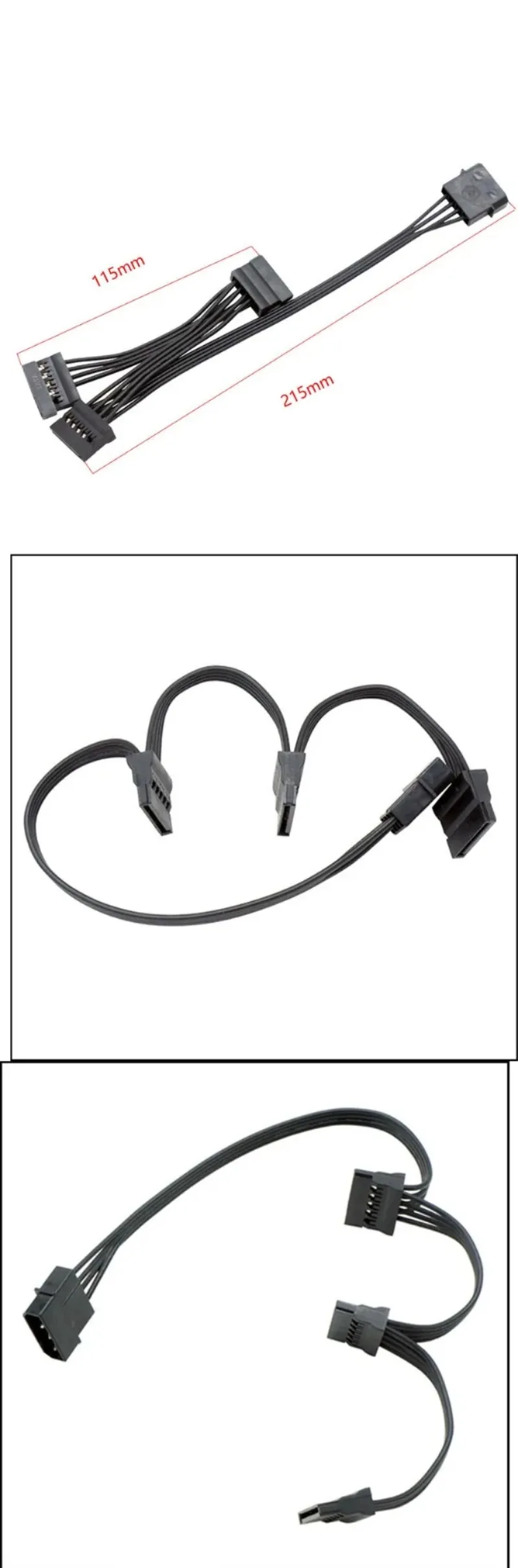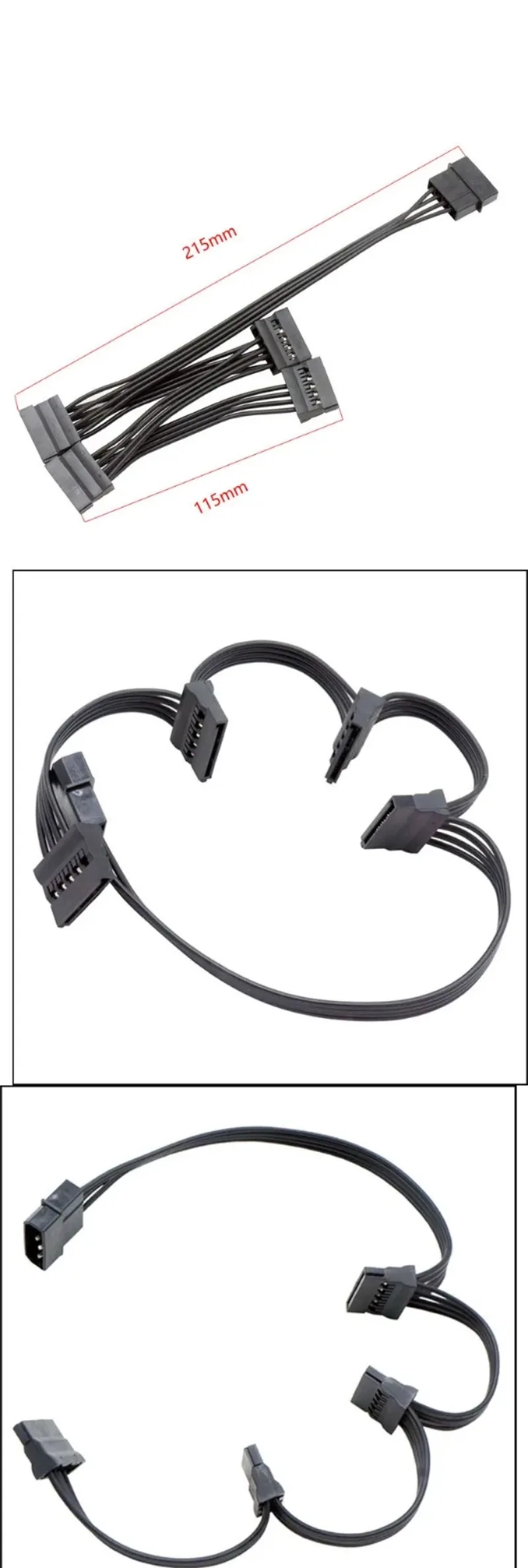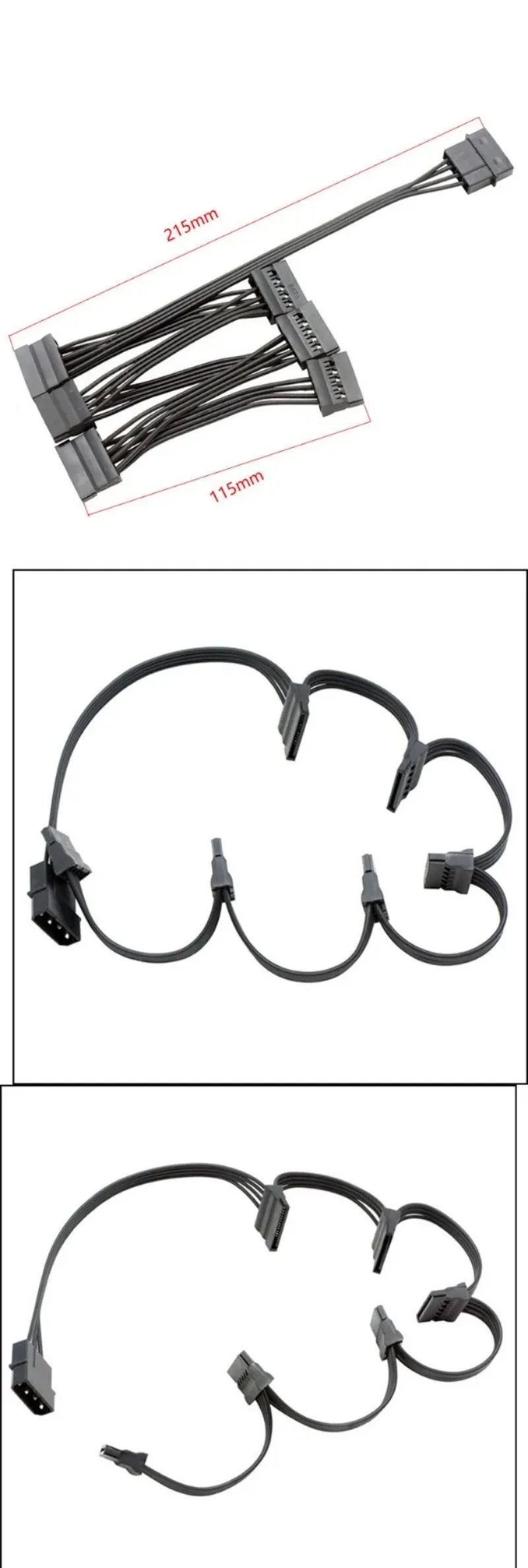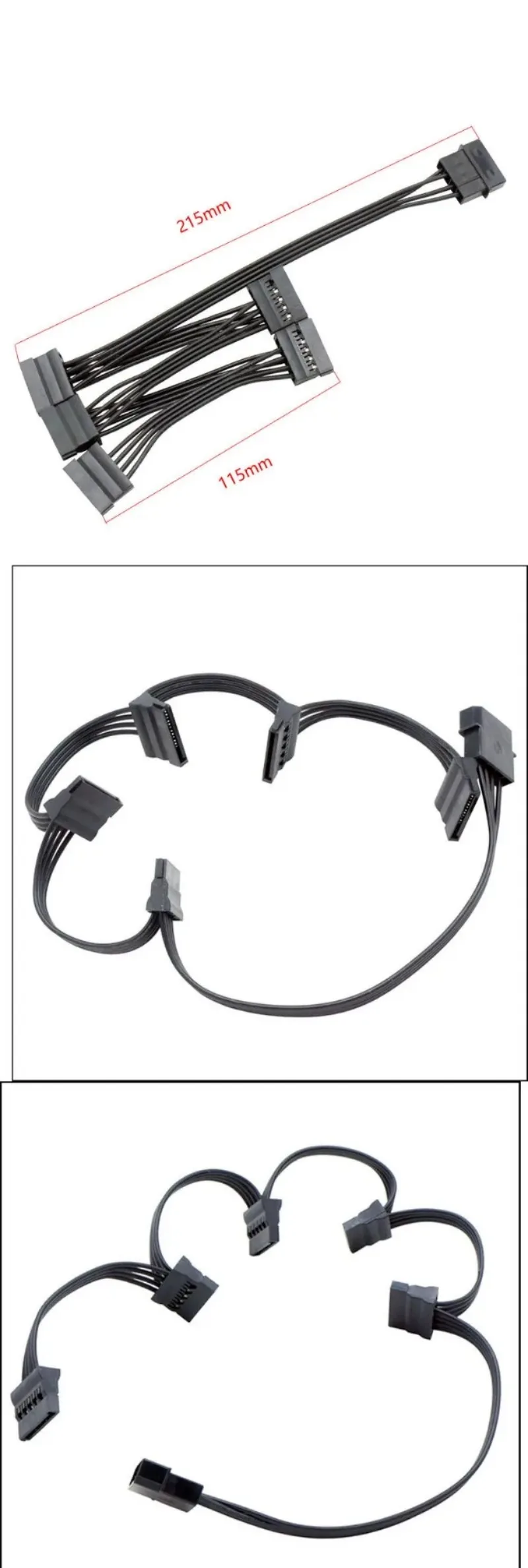 Divisor de adaptador de cable en Y de alimentación SATA de 4 pines a 3/4/5/6 x 15 pines: convierte un enchufe de 4 pines en un adaptador SATA de 5 x 15 pines, para resolver la situación de conector SATA insuficiente.