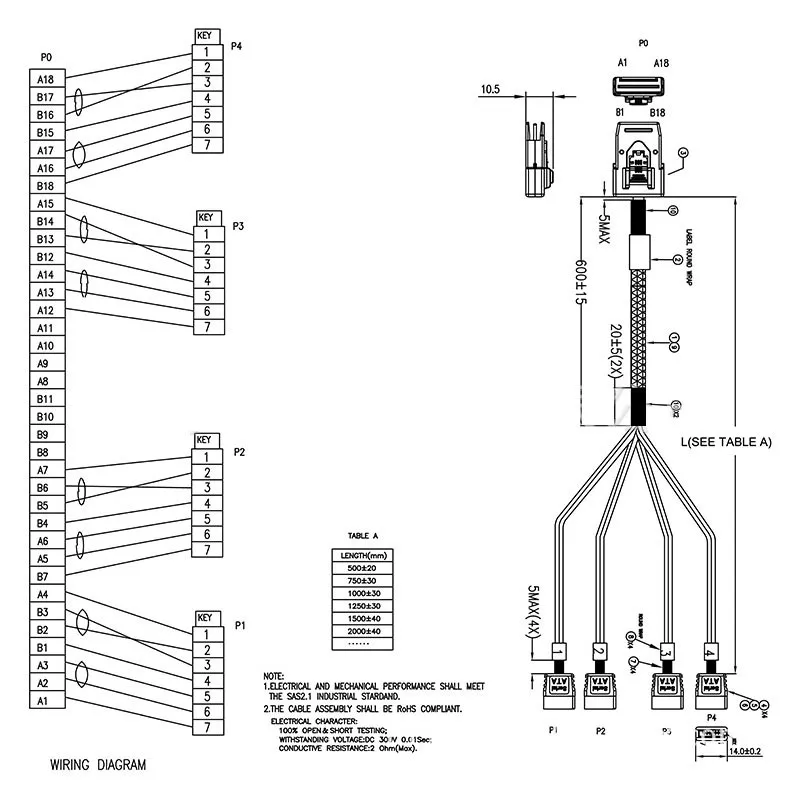 Cable divisor de datos de disco duro 1 ~ 5 1/0.5M 12Gbps Mini-SAS de 1 a 4 SATA Cable SAS 36P a 4 SATA3.0 para servidor