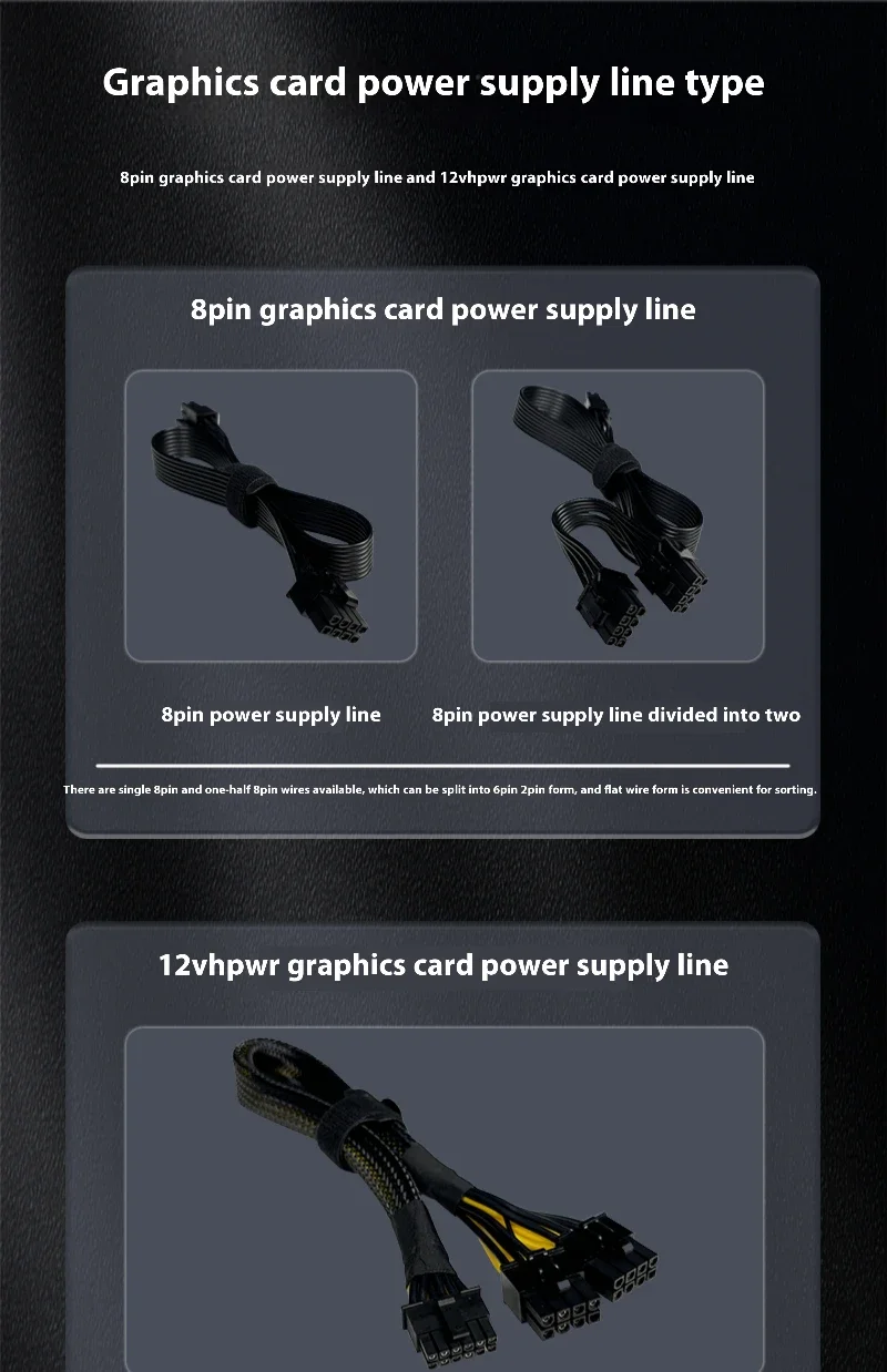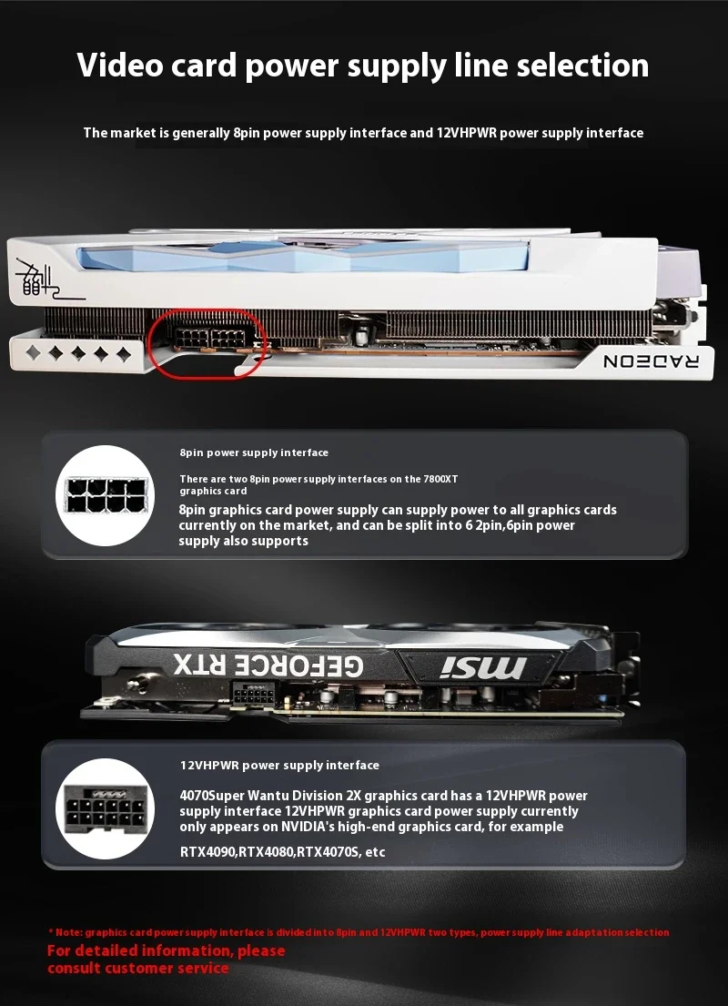 Cable de alimentación de 8 pines y 12VHPWR para GPU 6 + 2 pines RTX4090 RTX4080 RTX4070S Estación de acoplamiento de tarjeta gráfica Kits de estrella de suministro de 8 pines y 12V