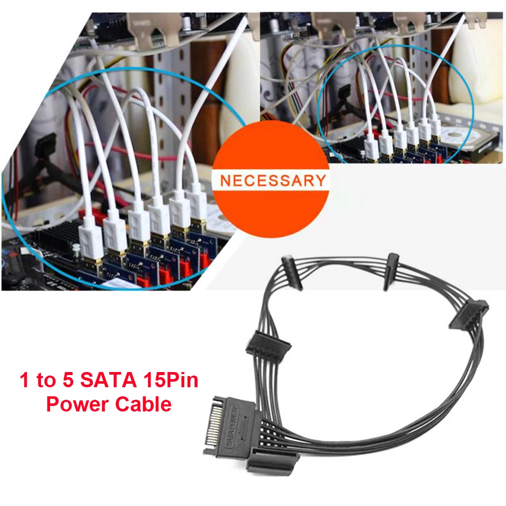 Comprar Cable divisor de fuente de alimentación para disco duro, adaptador de corriente de 15 Pines, 1 a 5 SATA, 15 pines F, para PC DIY