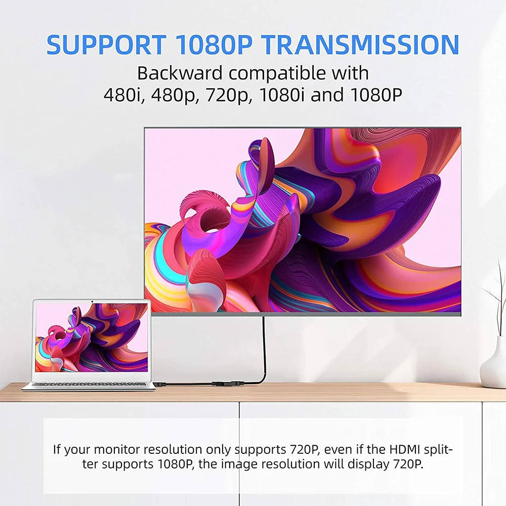 Divisor HDMI 1 entrada macho a 2 salidas hembra puerto adaptador convertidor 1080P