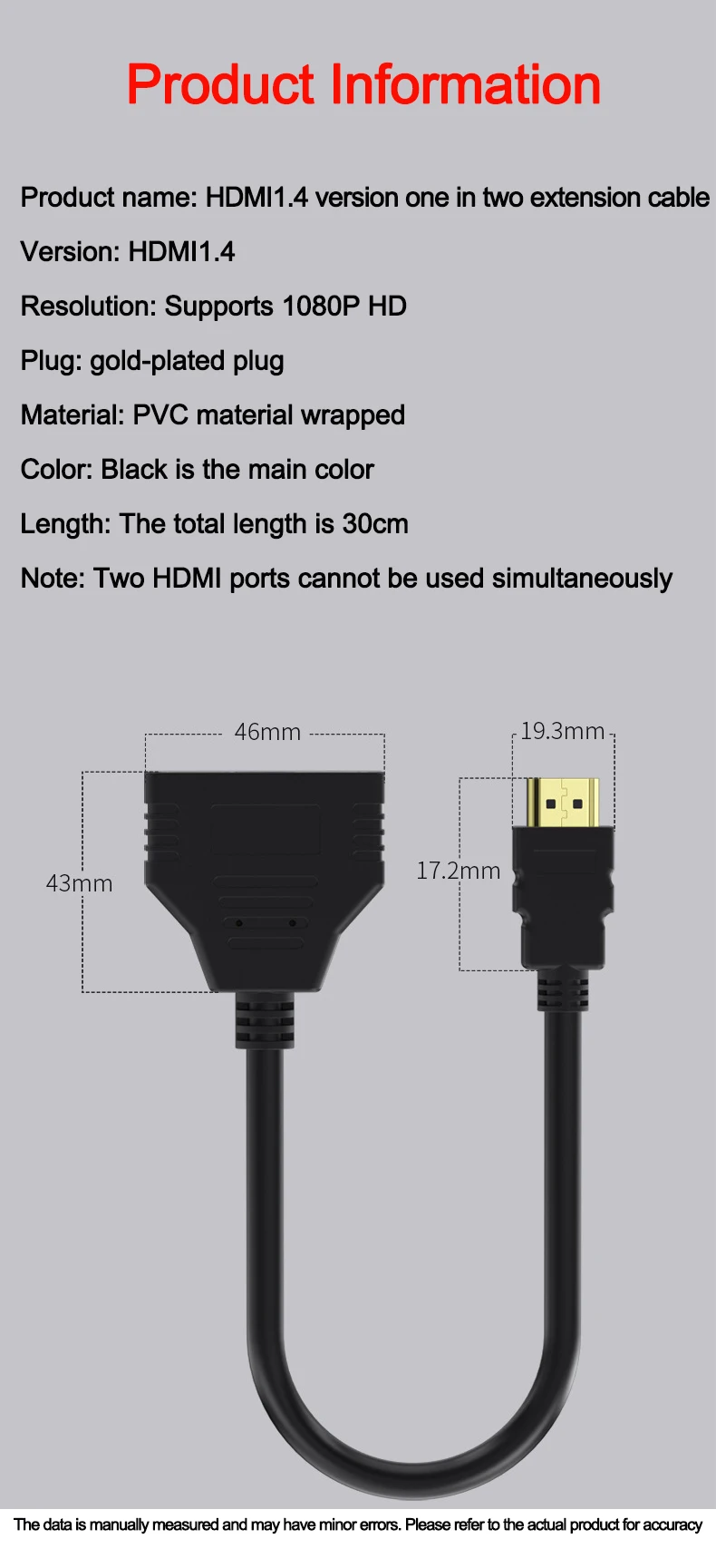 Comprar Cable divisor HDMI macho 1080P a HDMI Dual hembra 1 a 2 vías Cable adaptador divisor HDMI para ordenador portátil Monitor de TV 1080P 1 en 2 salidas