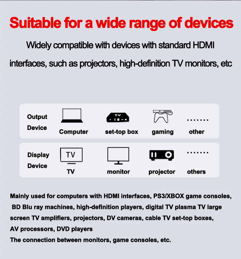 ♥ Ideal para conectar un dispositivo compatible con HDMI (como hd - dvd, blue - ray dvd, Xbox, xbox360, ps3, stb, notebook, HD TV) a dos dispositivos de salida visual (como HDTV, monitor, etc.).