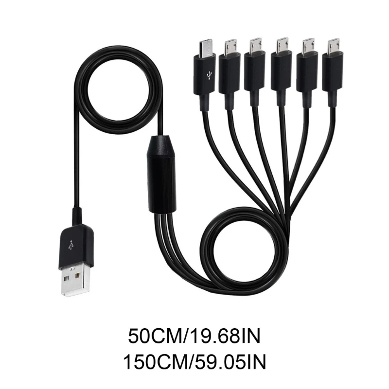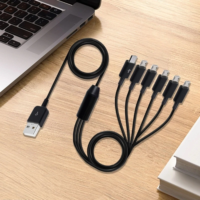 Experimente la comodidad de cargar múltiples dispositivos simultáneamente con nuestro cable divisor Micro USB. No más complicaciones de llevar varios cables, este cable 6 en 1 es todo lo que necesita para una carga y sincronización de datos eficientes.