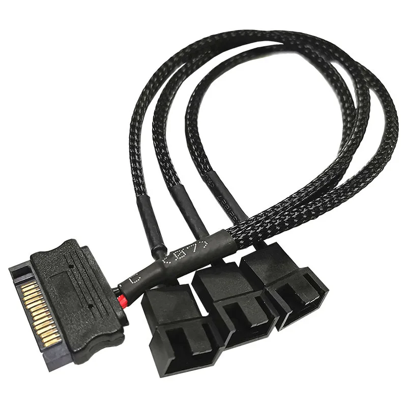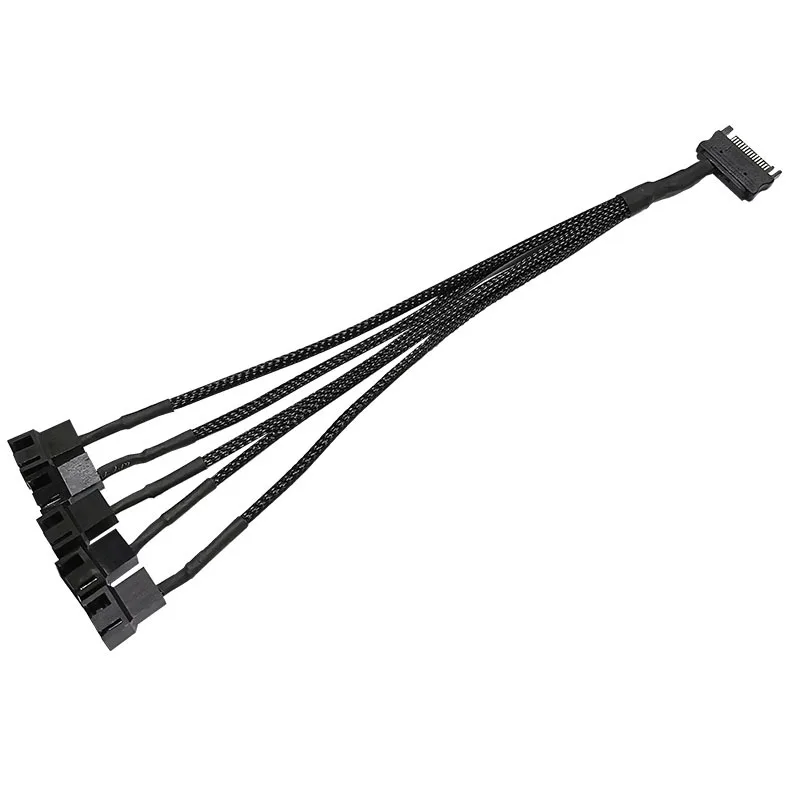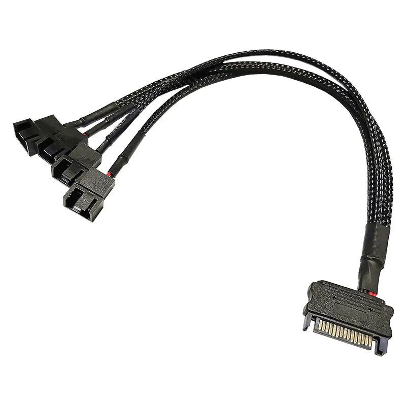 Interfaz del producto: conector SATA de un extremo, los otros extremos son para la interfaz de 4 pines del ventilador