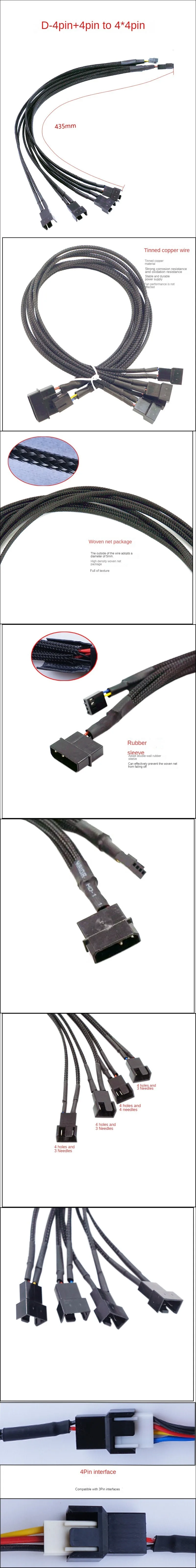 Cable divisor de alimentación de extensión de ventiladores PWM con funda, conector Molex de 4 pines o SATA a 3 4 5 Cable de alimentación divisor de ventiladores de 4 pines de 4 vías para placa base Conector PWM