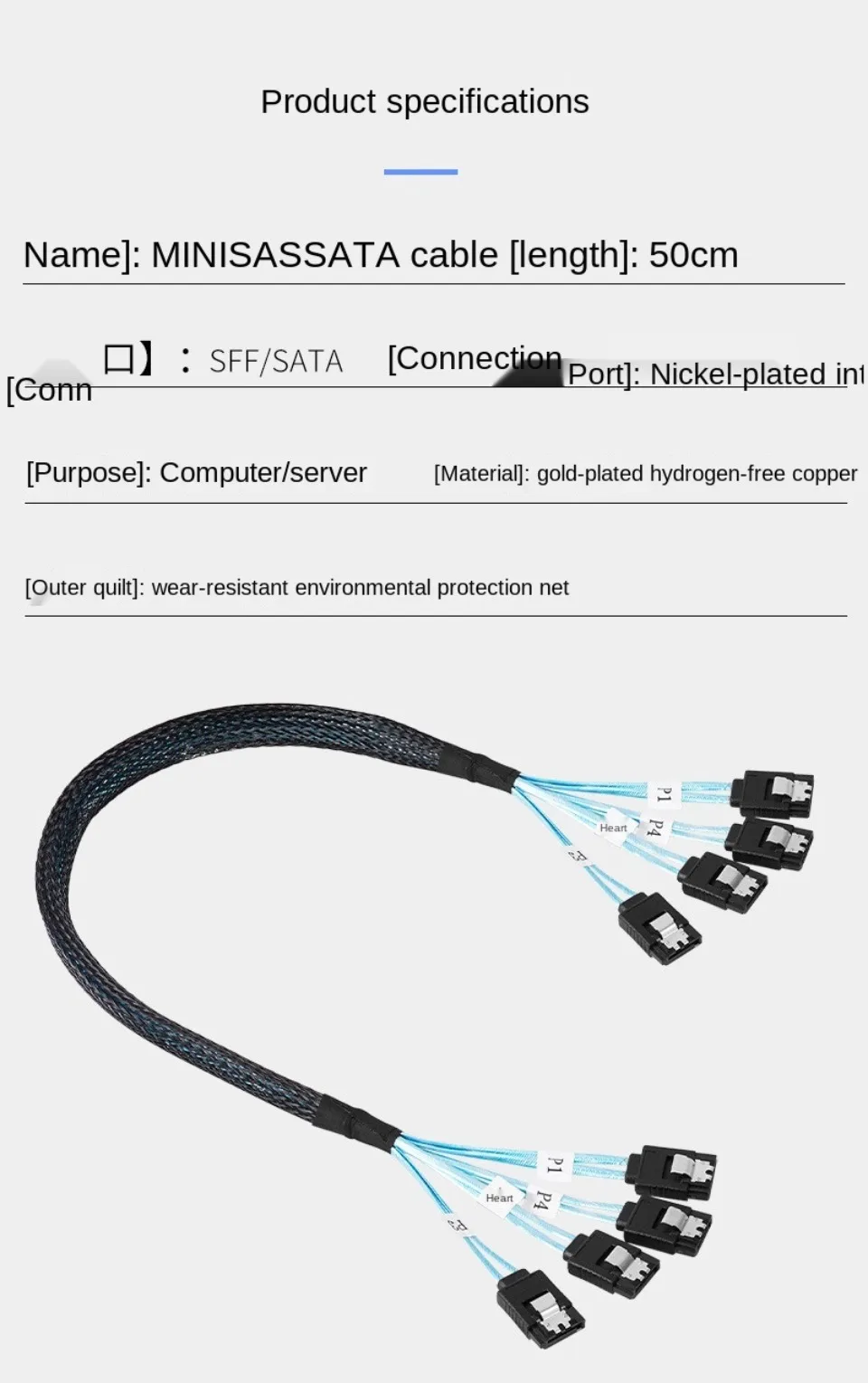 Comprar Cable divisor Sata a Sata para servidor, conjunto de 4 puertos, Cable de fecha de 7 pines a 7 pines, Cable Sas, 6Gbps, HDD, 4 unidades