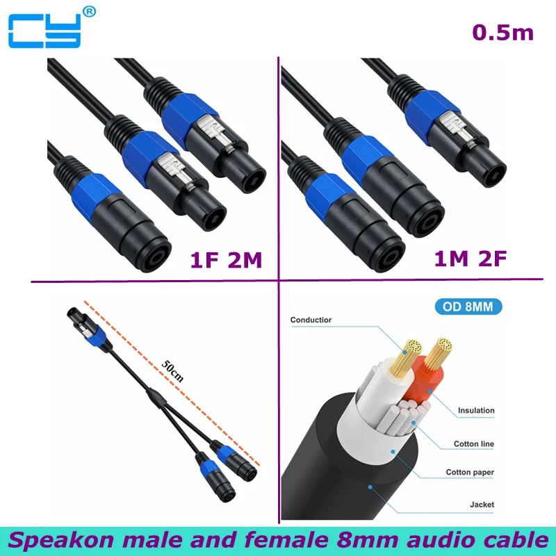 Comprar Cable divisor Speakon de 0,5 m, 1 macho a 2 hembra XLR Y, Cable divisor Speakon 1-hembra a 2-macho