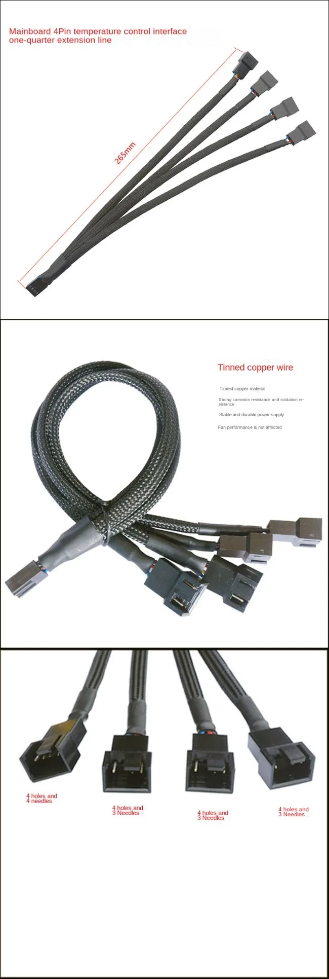 Cable divisor de ventilador PWM de 4 pines de 1 a 4 vías, Cable de extensión de alimentación de ventilador de manga negra, 4 pines hembra a 4 pines macho de 27cm/10,5 pulgadas