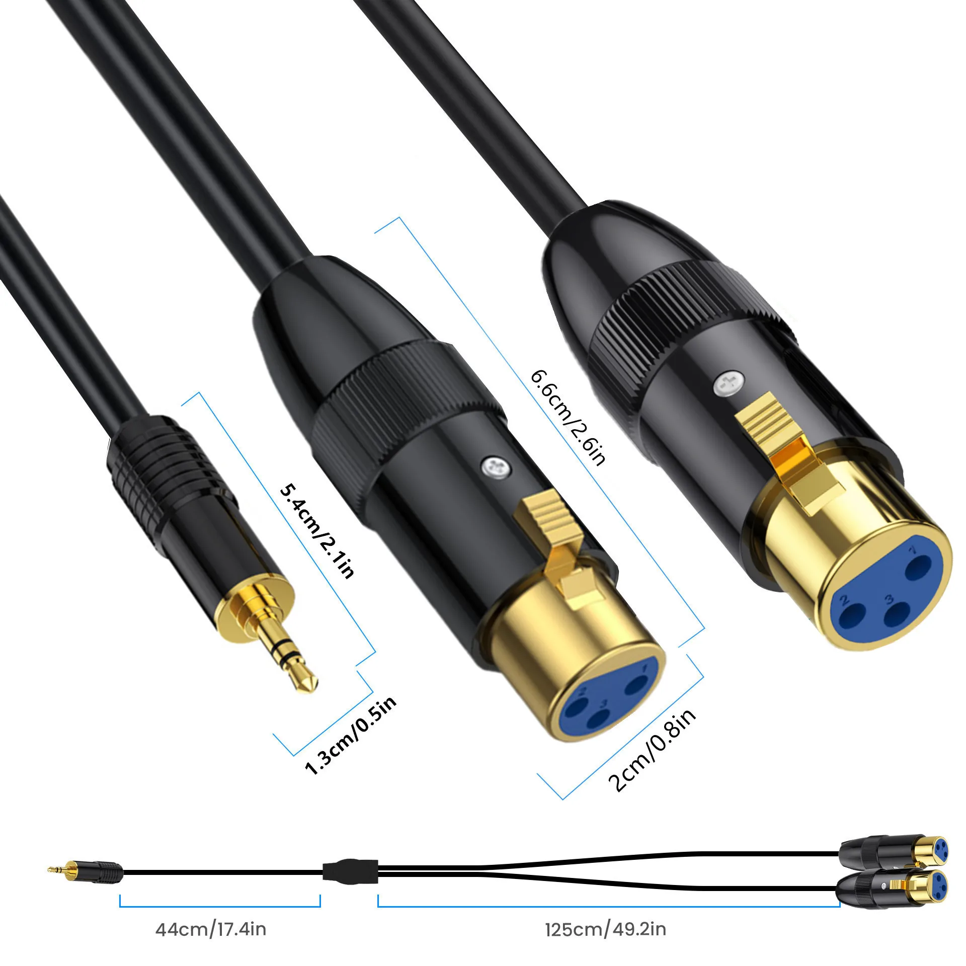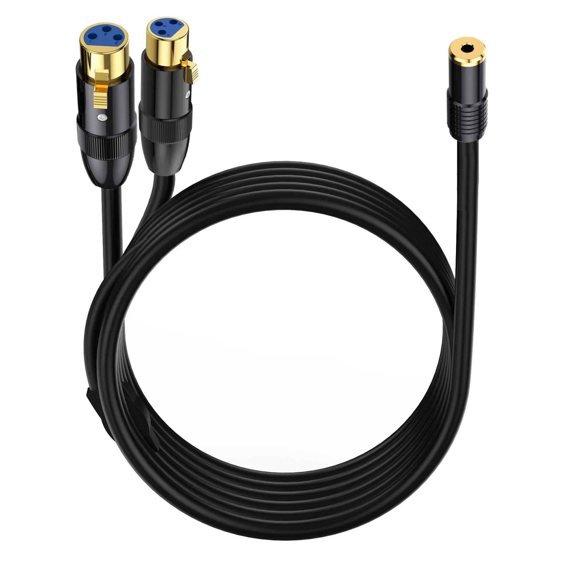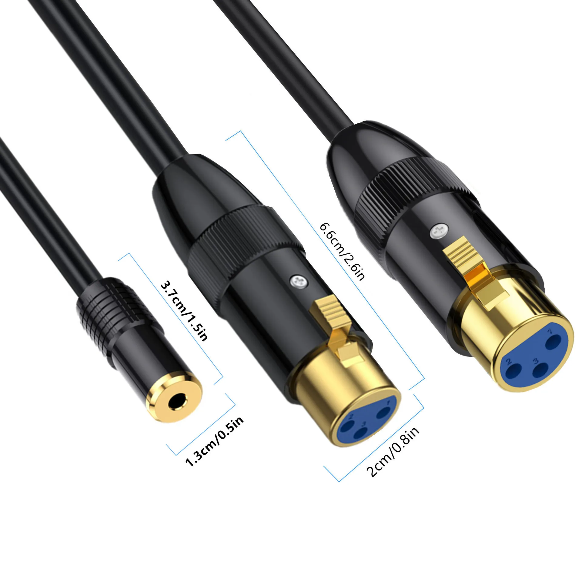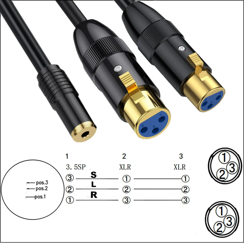 1/2 cabezal chapado en oro con carcasa de metal de cobre puro en forma de Y hembra de 3,5 mm a 2 micrófonos XLR macho de 3 pines, cámara, grabadora, mezclador, cable de audio de 0,5 m, 1,8 m y 3 m;