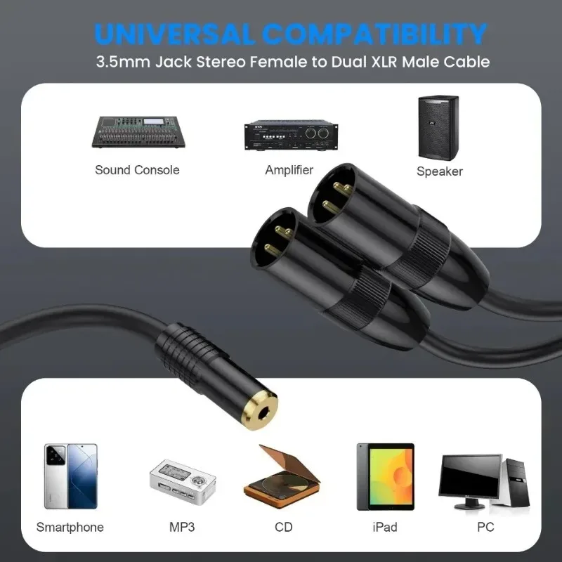 Comprar Cable divisor Y de 3,5mm(TRS,1/8 pulgadas, Aux) hembra a Dual XLR macho hembra, Cable de interconexión sin equilibrio para micrófono