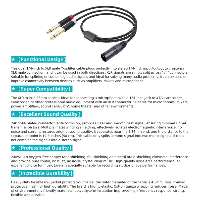 Para mayor durabilidad y flexibilidad, este cable de 3 pines a 6,35 mm ofrece una solución confiable para conectar su equipo y ofrece un sonido excepcional.